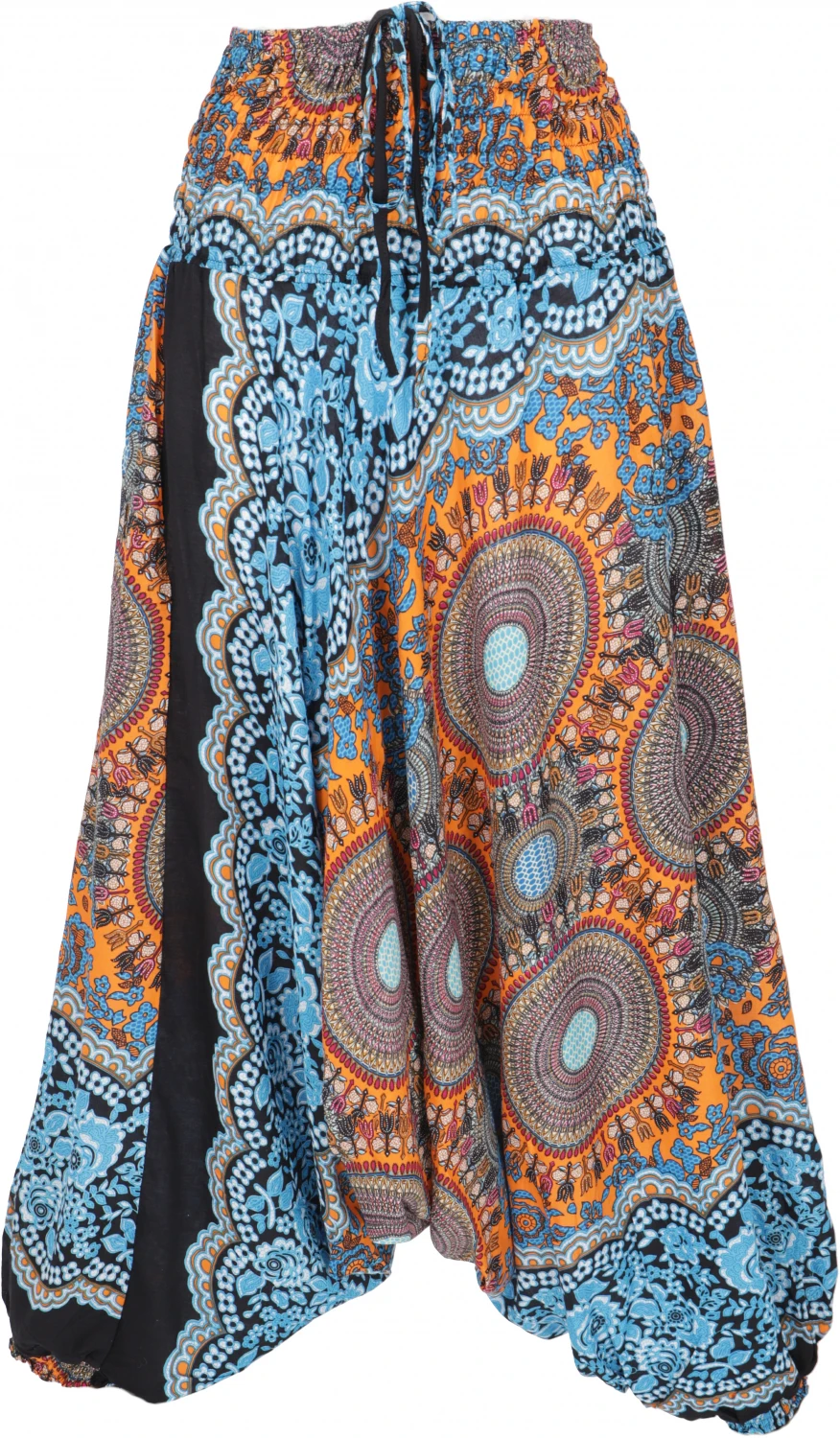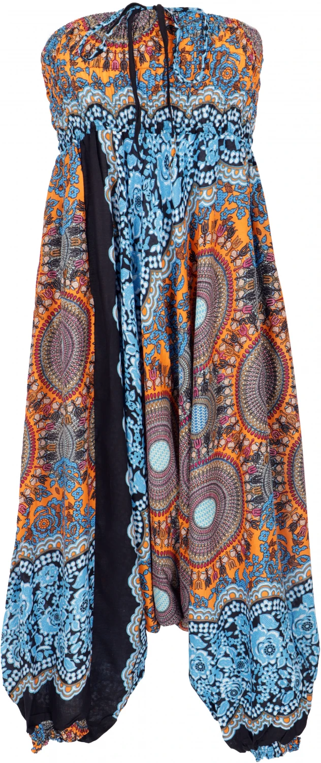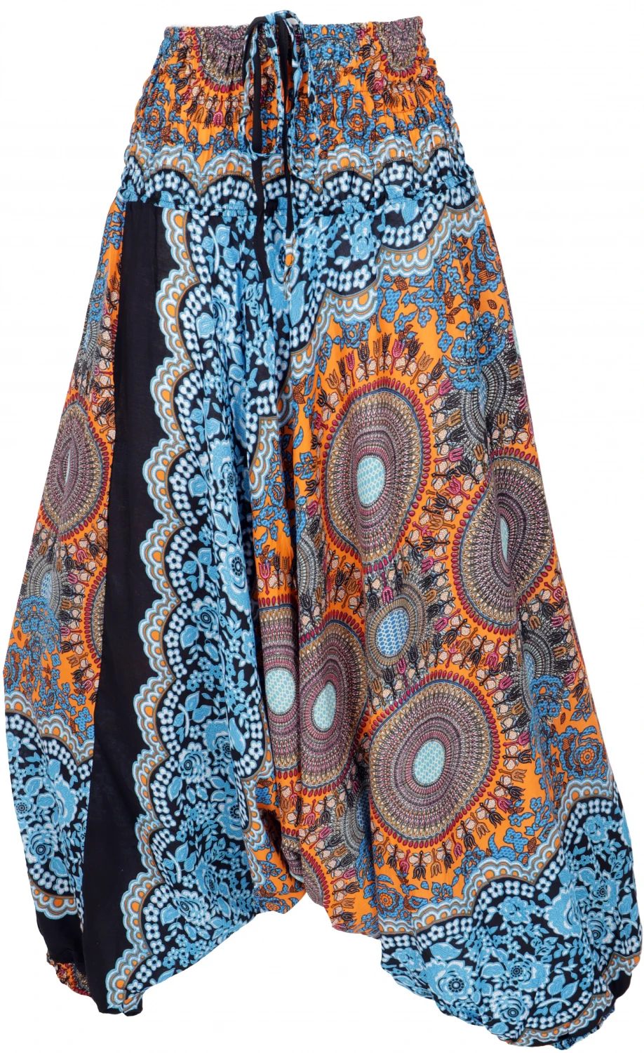Extraweite Pluderhose mit tief sitzendem Schritt. Der breite, gesmokte Bund wird zum figurbetontem Top und die Hose zum chicen Overall, wenn man sie entsprechend hochzieht.