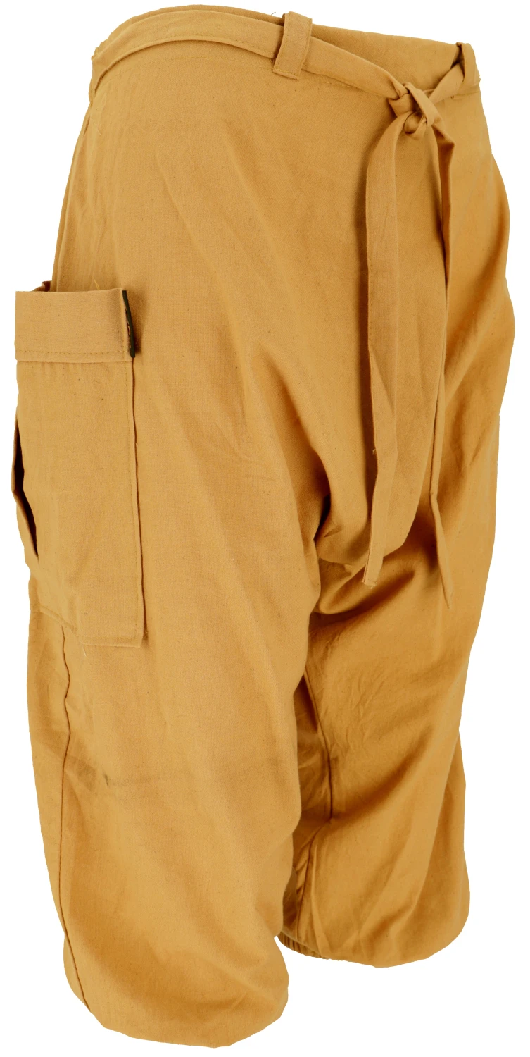 Luftige knielange Hose mit großer aufgesetzter Tasche.