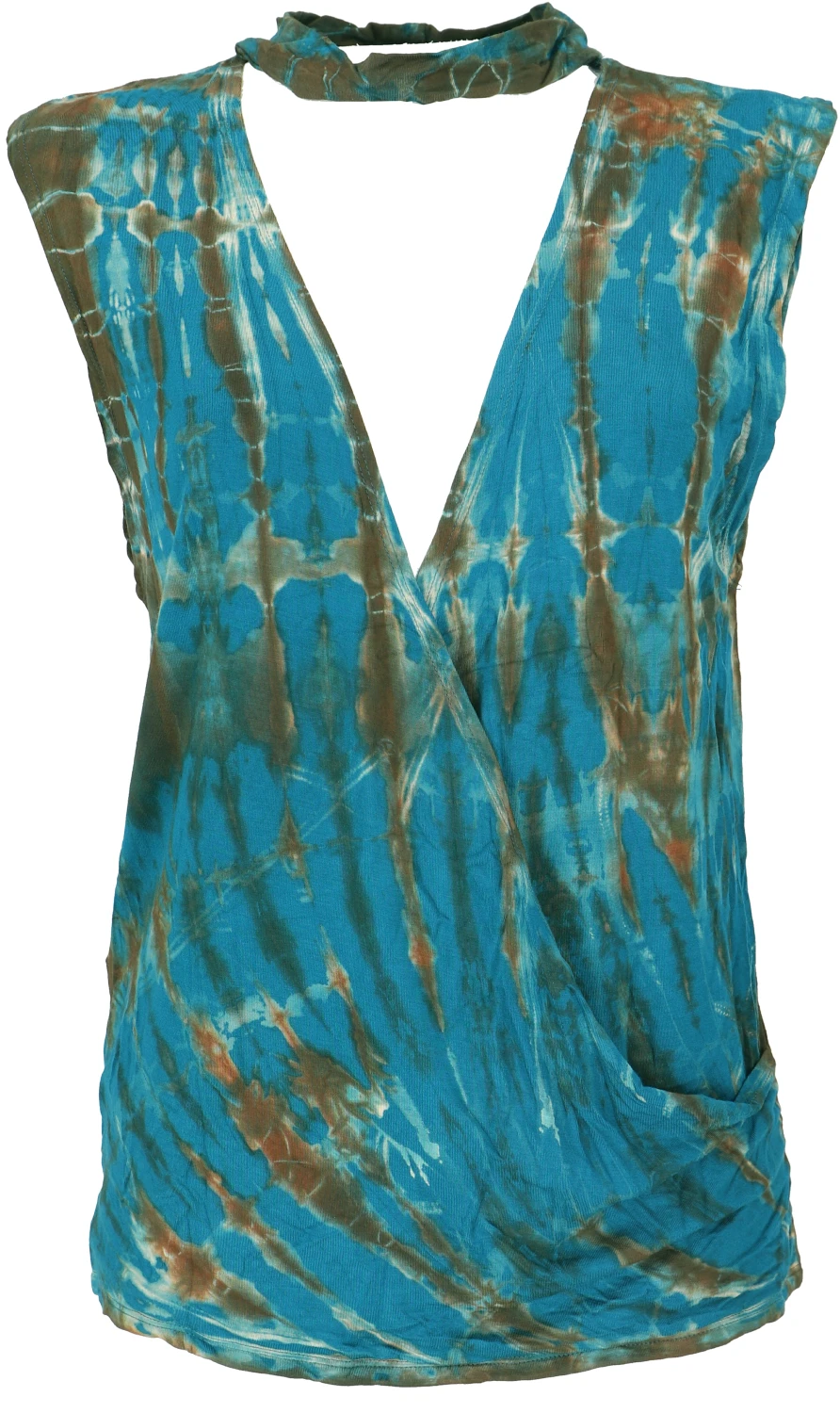 Wunderschönes, elastisches Batikshirt. Es ist vorn tief ausgeschnitten und mit einem stylischen Halsband sowie einem hohem Nacken. Das Top fällt locker und passt sich super der Figur an. Jedes farbenfrohe Top ist ein Unikat und so einzigartig wie Du selbst. Deswegen können Muster und Farben von der Abbildung abweichen, was kein Fehler ist, sondern die Individualität dieses farbenfrohen Top`s unterstreicht.