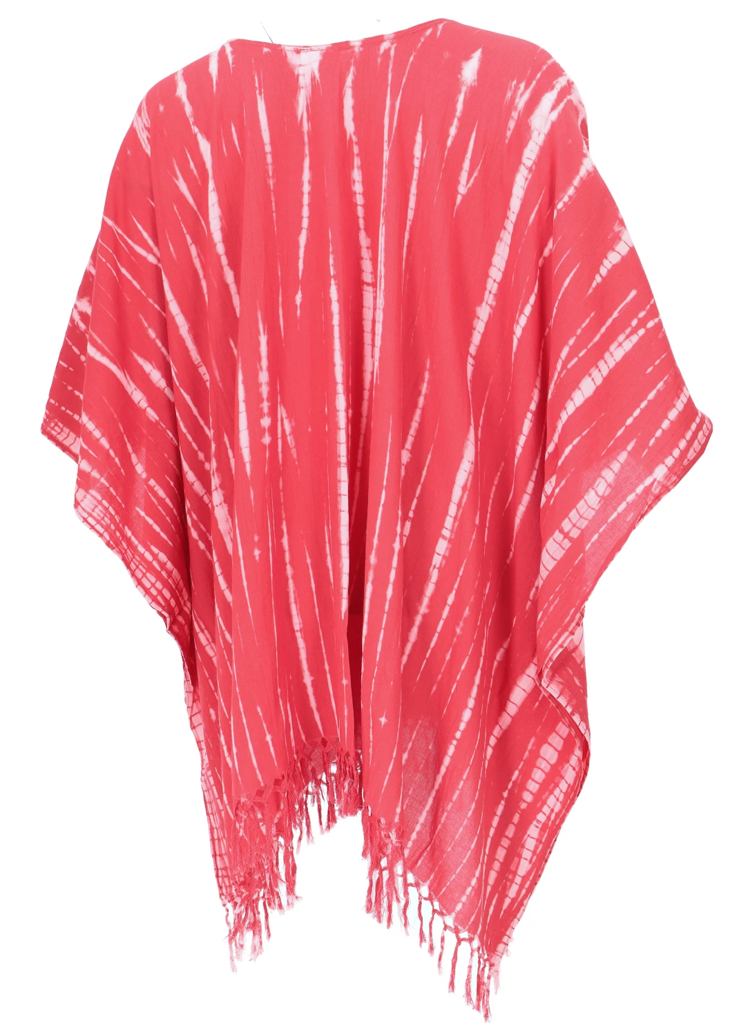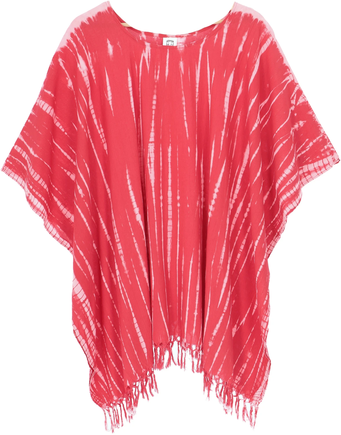 Schöne und luftig leichte Sommer Tunika in Farben von Hand gefertigter Batik. Jedes Stück ist ein Unikat. Die Anordnung und das Muster der Batik können daher leicht von der Abbildung abweichen. Durch die angenehme Weite ist diese Tunika auch für weiblichere Figuren und größere Größen geeignet.