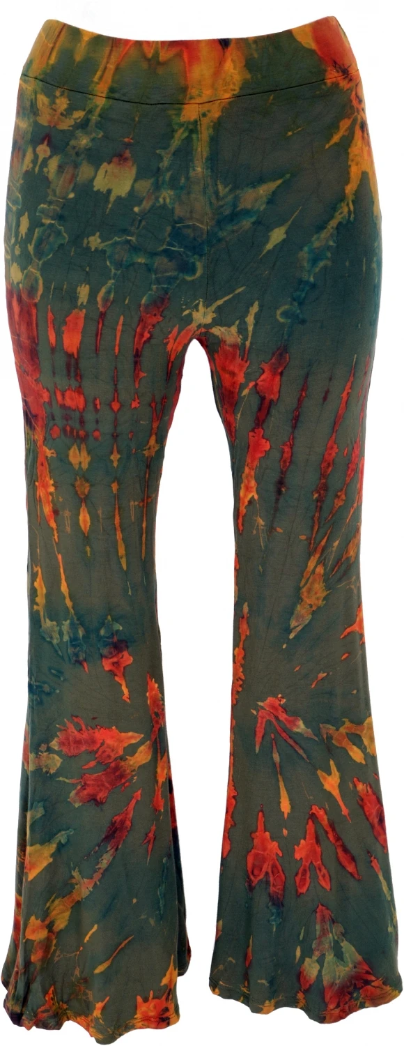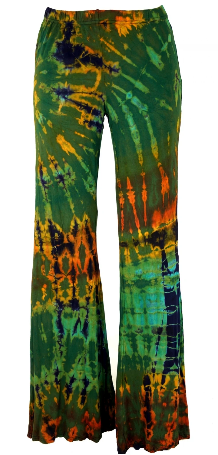 Farbenfrohe Leggings mit ausgestelltem Bein. Die Batik ist von Hand gefertigt. Jedes Stück ist ein Unikat. Das Muster der Batik kann daher von der Abbildung abweichen.