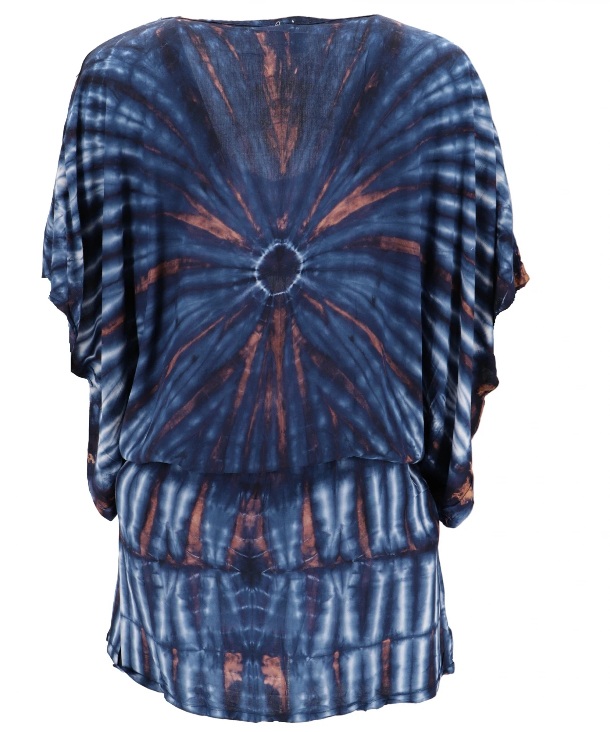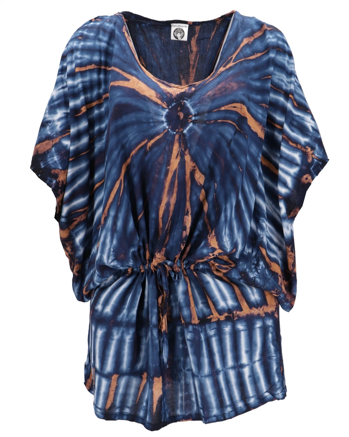 Jede Tunika ist ein Unikat. Das Muster der Batik und die Anordnung der Farben kann daher von der Abbildung abweichen.