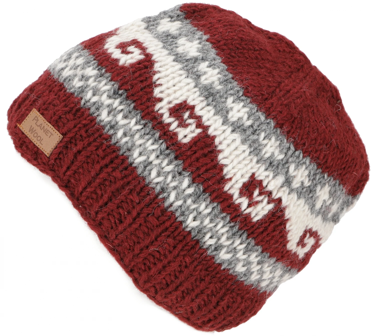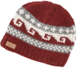Beanie Mütze, Strickmütze Mit Mäandermuster Aus Nepal, Wintermütze – Rot