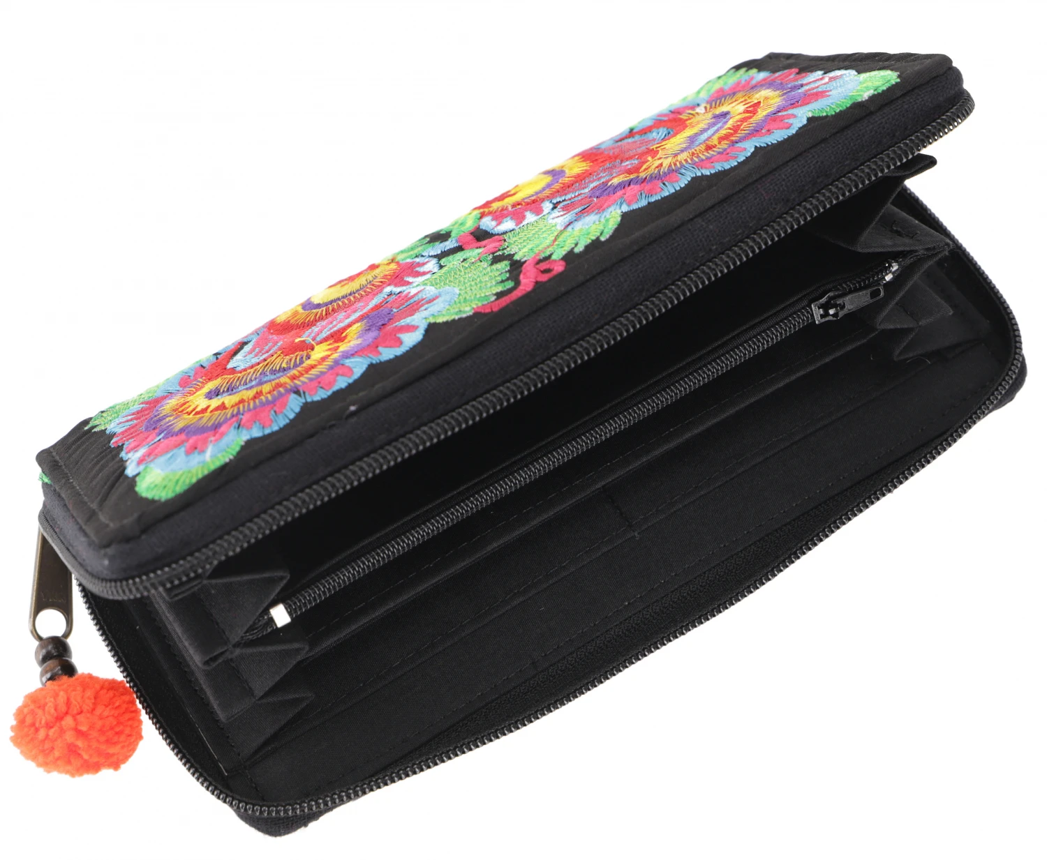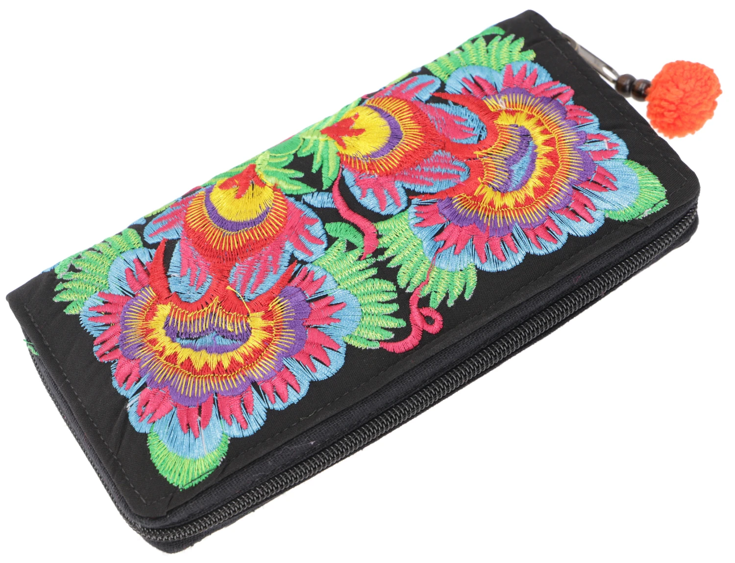 Diese schöne Geldbörse ist mit den wunderbaren traditionellen Mustern Thailands bestickt. Leuchtende Farben und florales Design machen gute Laune.