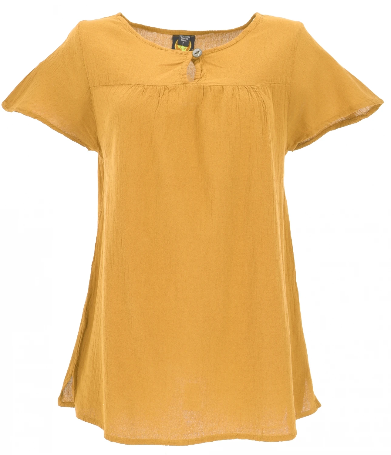 Luftige Bluse für heiße Tage mit hübschem Kokosknopf. Der leichte Baumwollstoff und der lockere Sitz des Blusentop lassen dich beschwingt die Sommerhitze genießen.