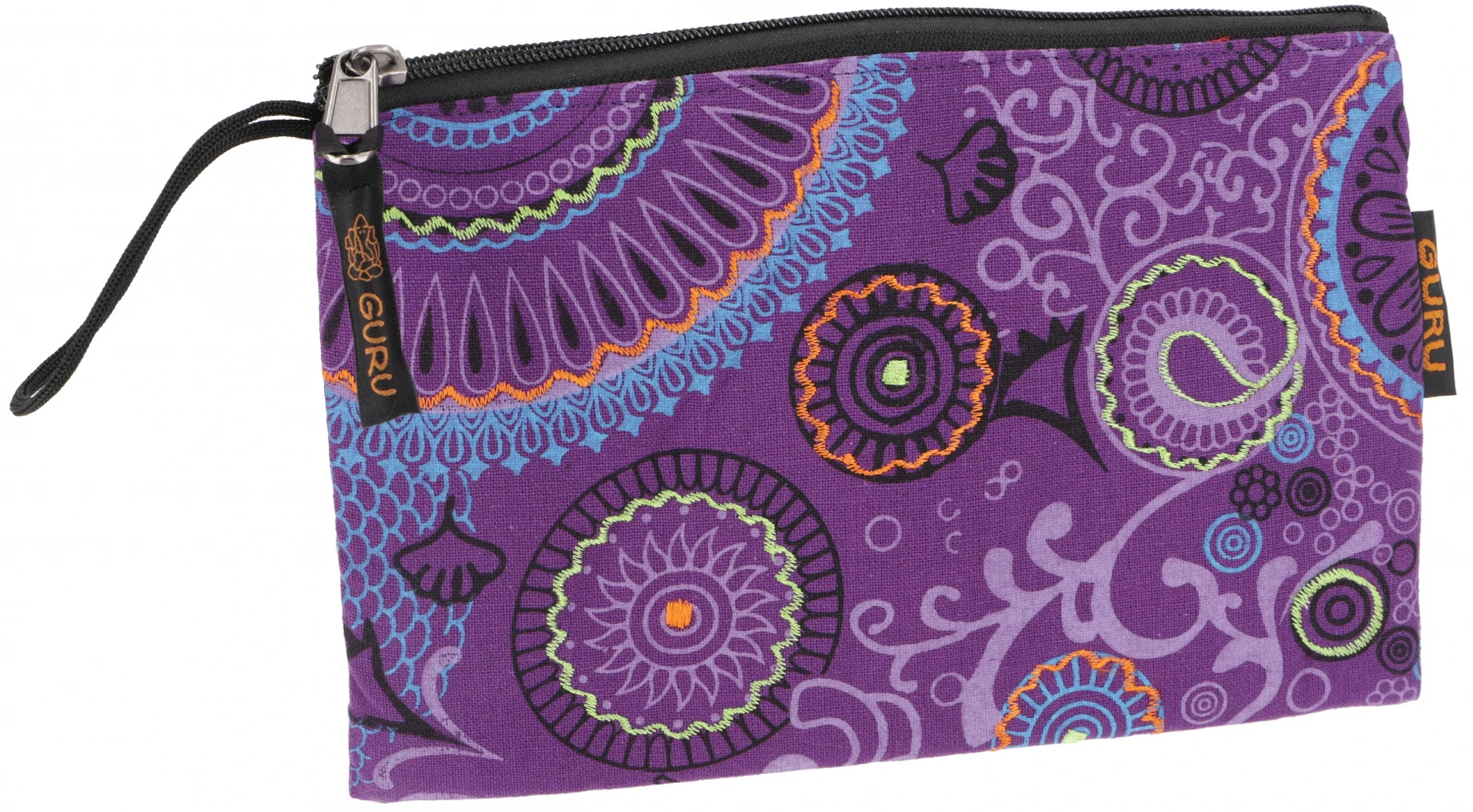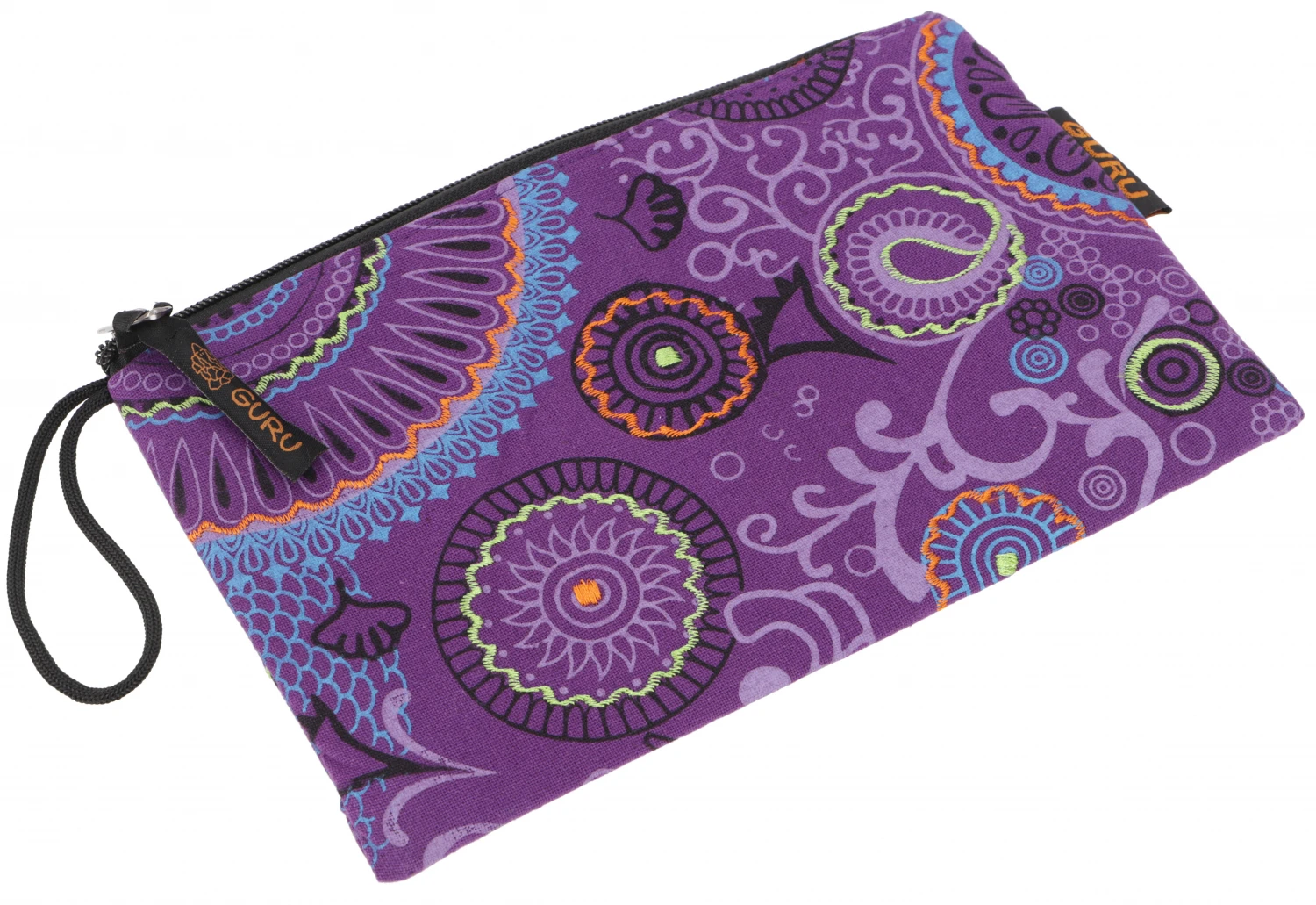 Hübsche Kosmetiktasche aus Nepal mit kontrastreicher Stickerei.