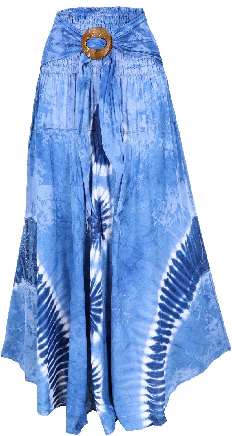 Leichter, weit schwingender Rock mit schöner Schnalle aus Kokosnuss. Die Kokosschnalle kann auch gelöst und individuell als Befestigung für Tücher und Sarongs verwendet werden.