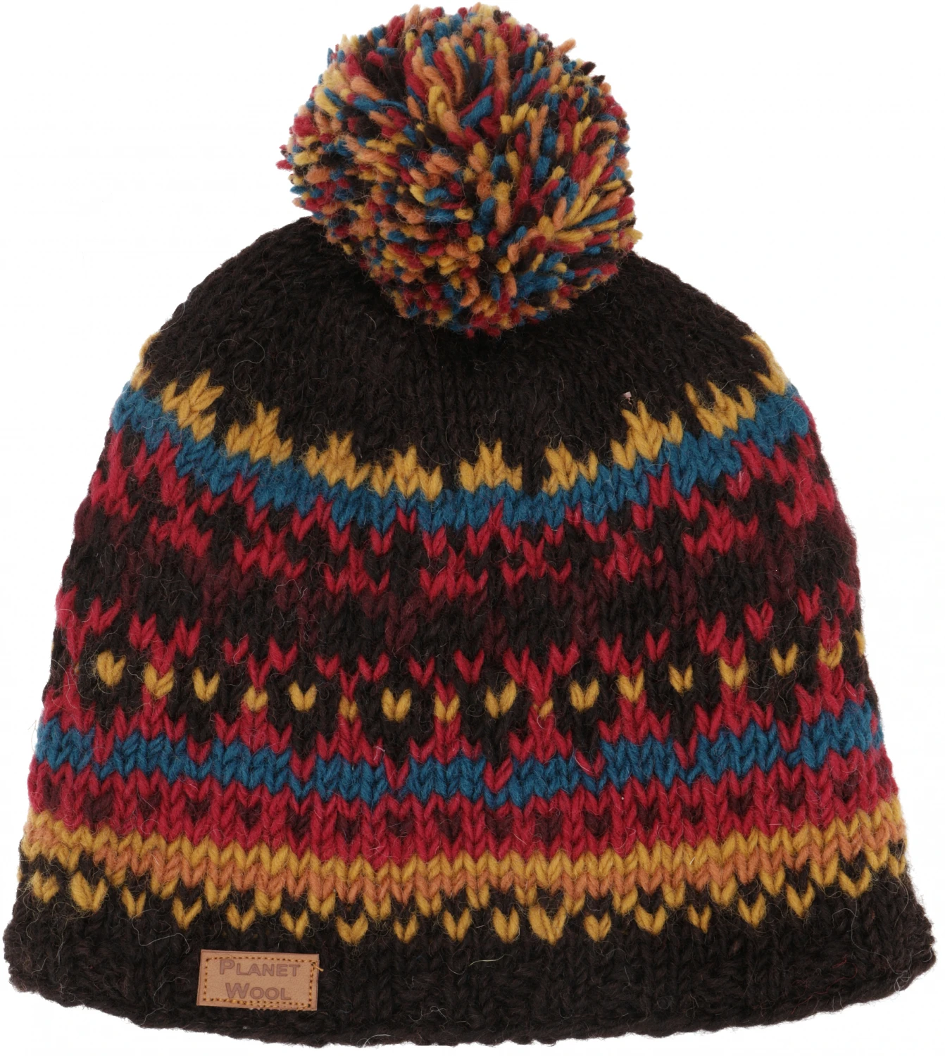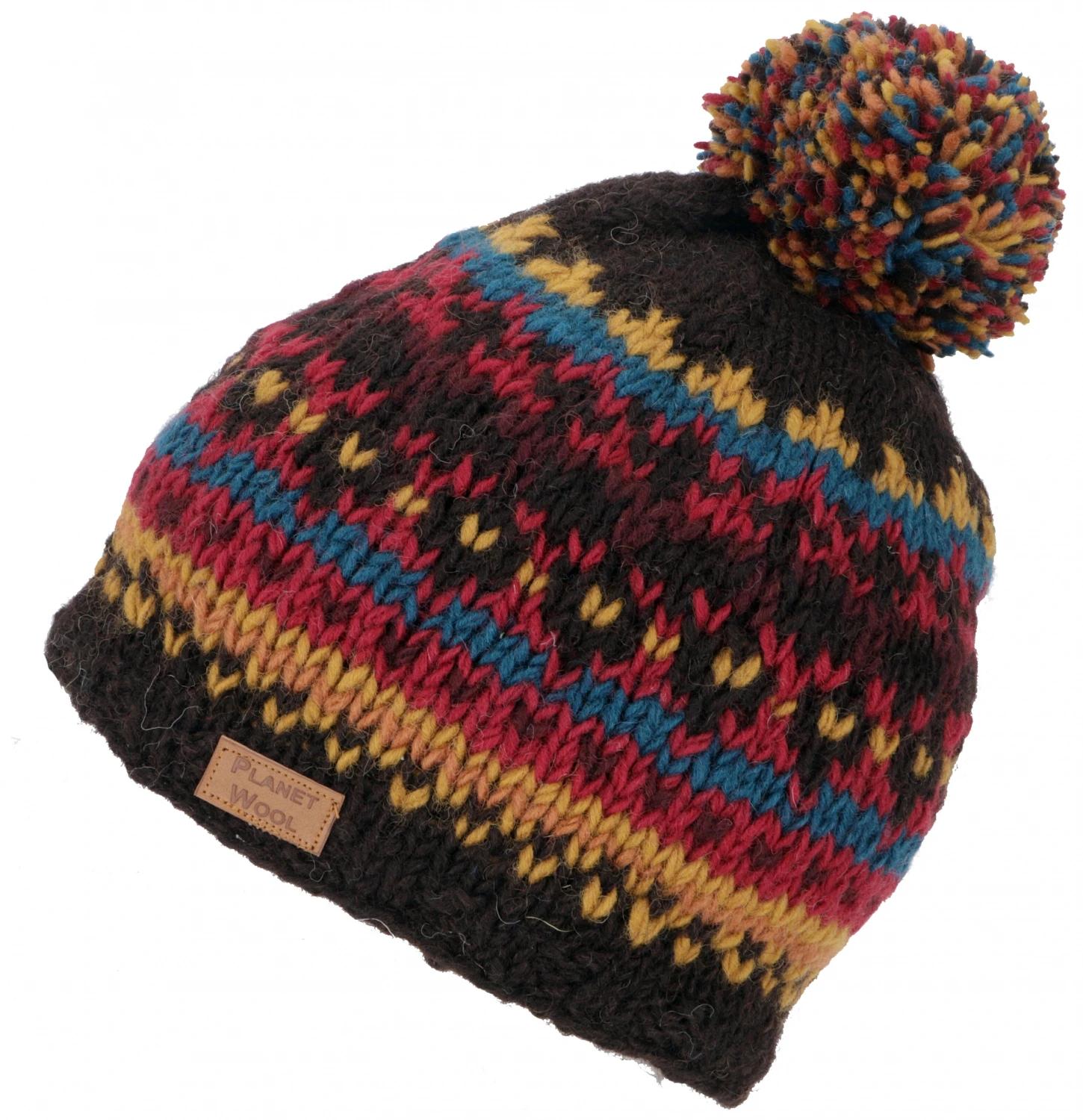 Bommelmütze Aus Nepal, Mütze Aus Schurwolle, Wintermütze – Dunkelbraun/kurkuma