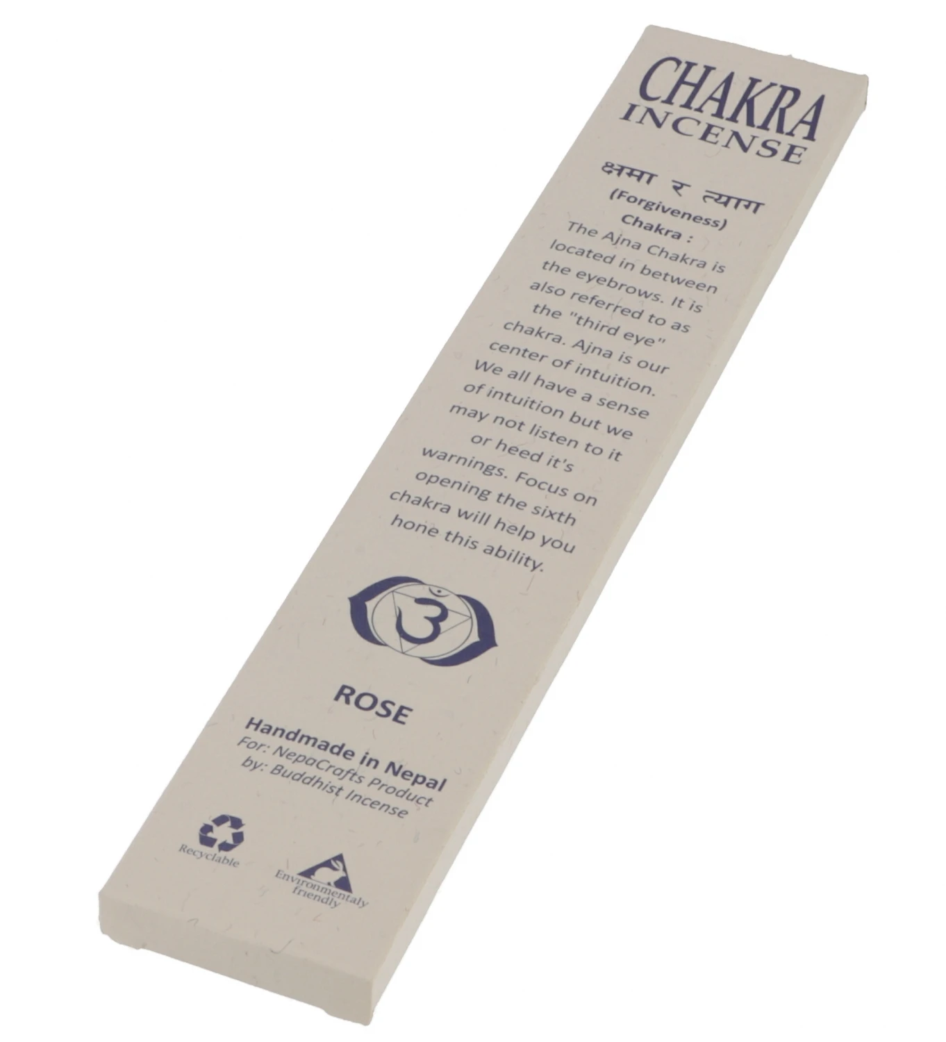 Natürliche, von Hand gerollte Räucherstäbchen aus Nepal. Räucherstäbchen, die die Meditation auf das Dritte Augen-Chakra (Ajna) unterstützen.