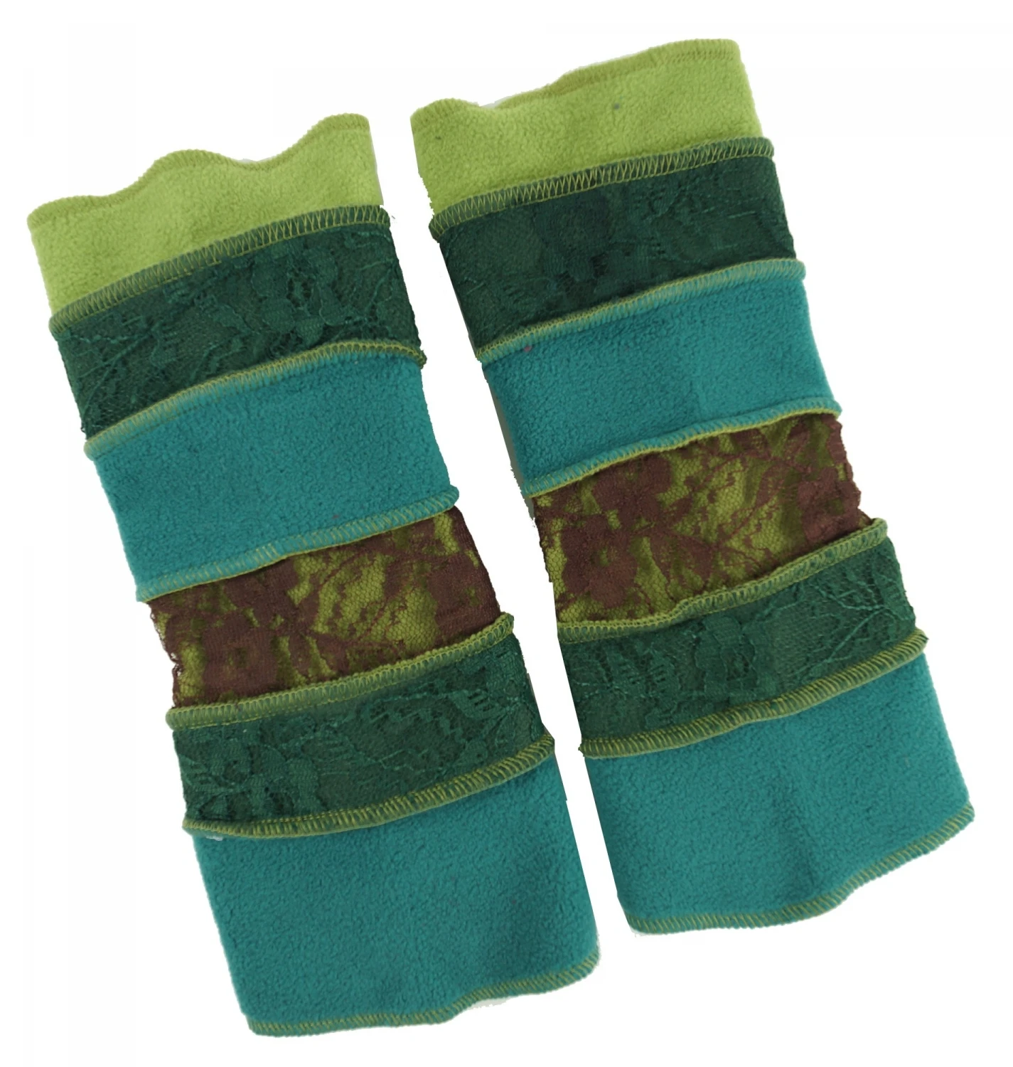 Elfen Handstulpen, Boho Pulswärmer – Petrol/lemon