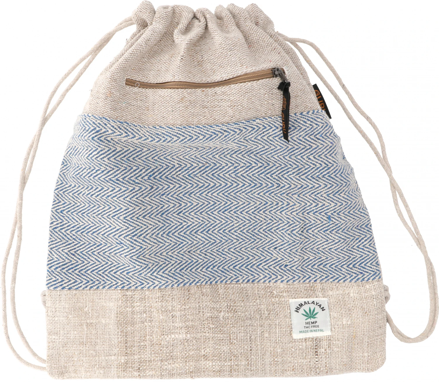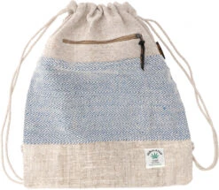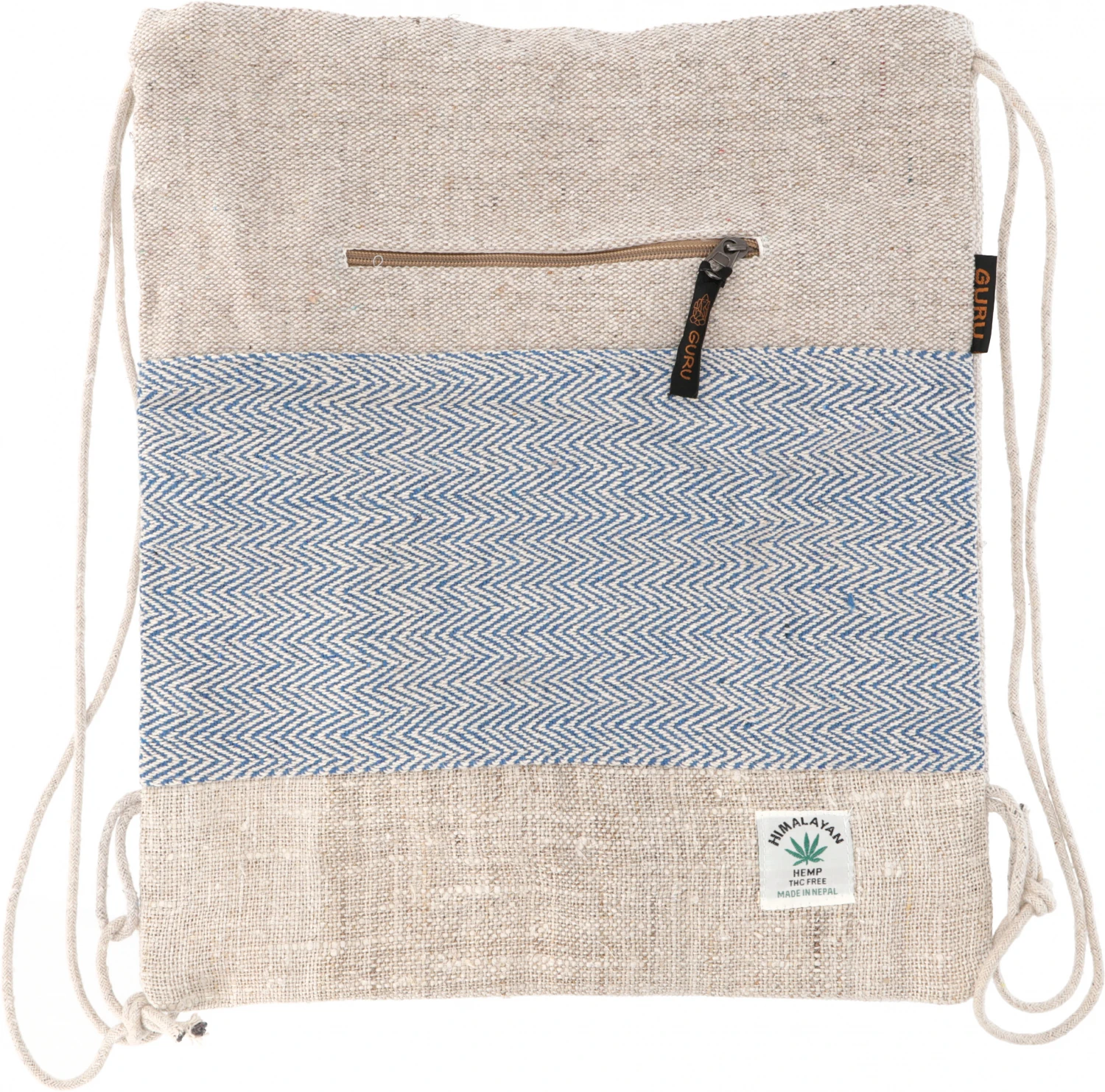 Ethno Hanf Rucksack, Turnbeutel, Sportbeutel – Natur/blau – 40×33 Cm