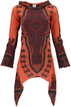 Extravagantes Minikleid mit langen Ärmeln und weiter Kapuze. Figurbetonter Schnitt in tollem Dashiki-Print. Ein perfektes Kleid für nicht ganz so heiße Tage oder in Kombi mit Leggings und Stiefel auch in den kühlen Jahreszeiten ein absolutes Lieblingsstück. Bitte separat von Hand waschen.