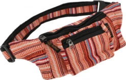 Gürteltasche aus Webstoff mit drei Reißverschlusstaschen. Mit dieser schönen Tasche, die auch wunderbar als Crossbody Bag getragen werden kann, sind die wichtigsten Dinge, wohl sortiert verstaut.