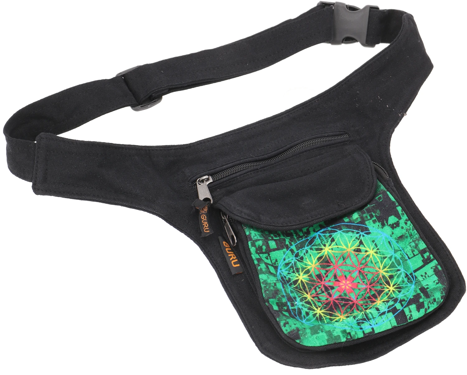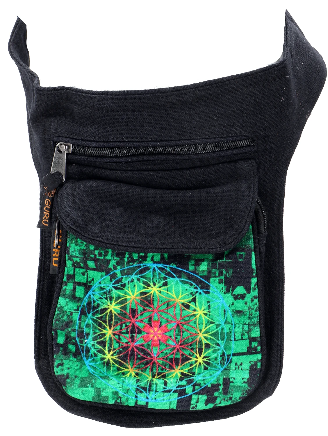 Festivalgürteltasche, Sidebag, Crossbag Mit Psychodelischem Druck- Flower Of Life – 24x17x4 Cm