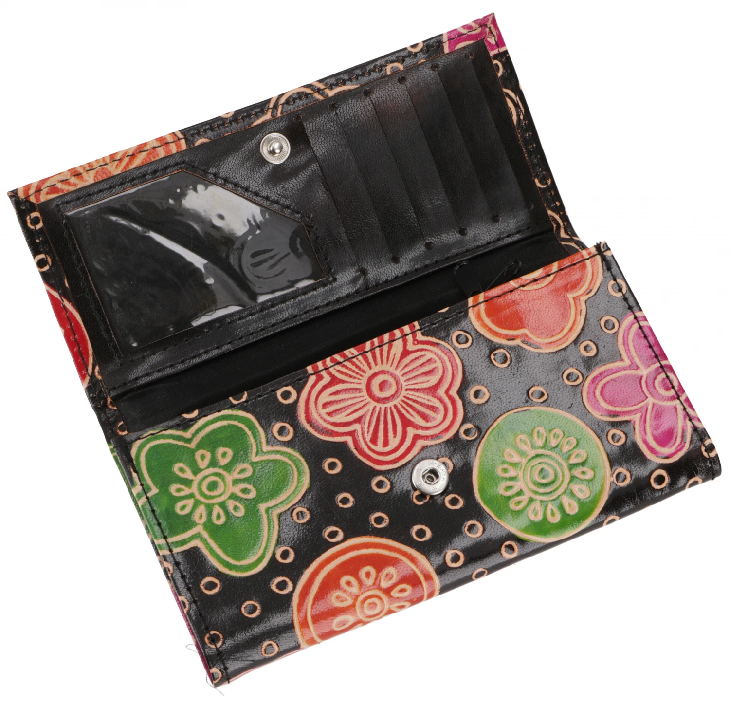 Klassisches Lederportemonnaie mit übersichtlichen Fächern und ausreichend Platz für Karten und Papiere.