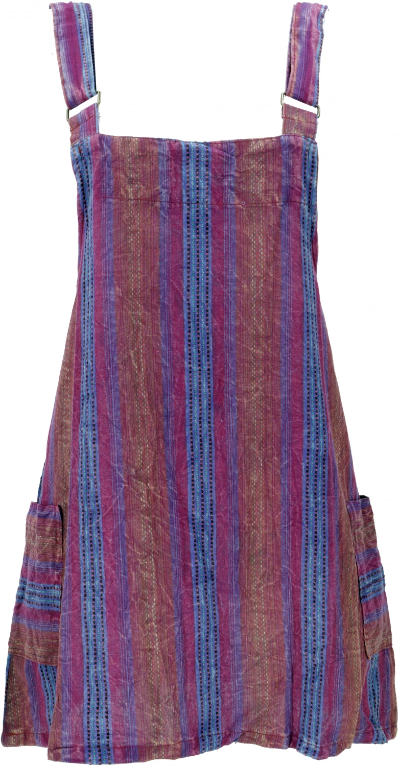 Bequemes Trägerkleid mit seitlich aufgesetzten Taschen. Die Träger können in der Länge eingestellt werden. Das Material ist vorgewaschen und fällt sehr schön.