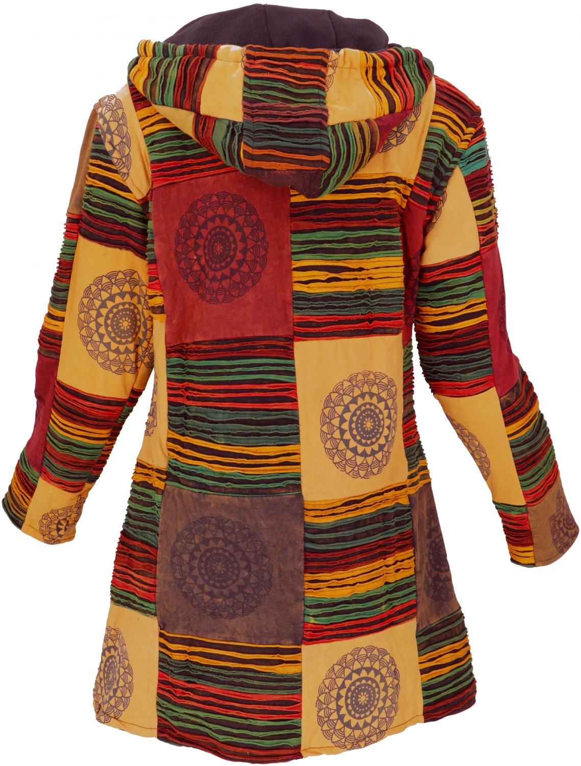 Die aufwendige Patchworkarbeit wird durch Mandaladrucken ergänzt. Jede Jacke wurde individuell von Hand gefertigt und kann deshalb leicht in Muster und Farbe von der Abbildung abweichen.