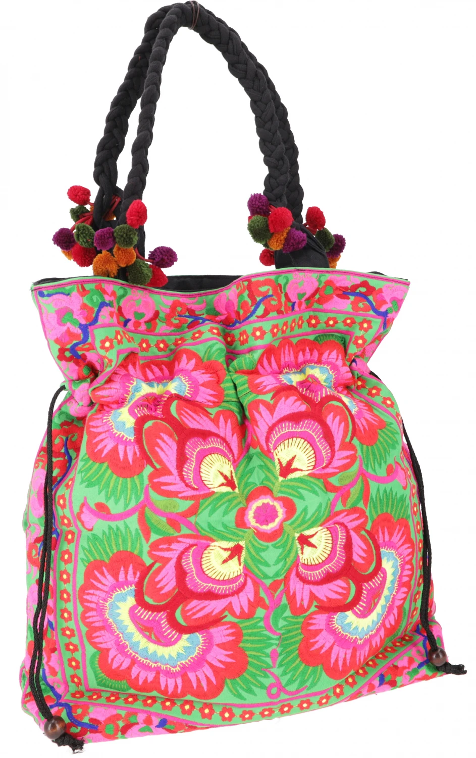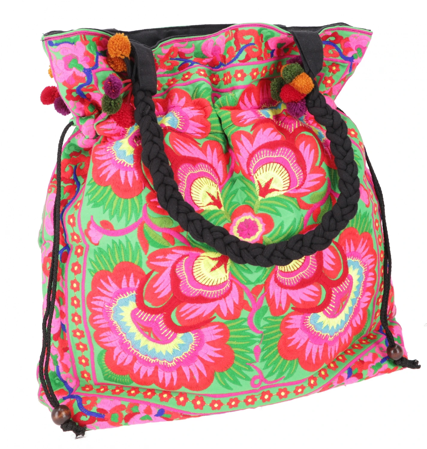 Von beiden Seiten bestickte, farbenfrohe Tasche aus dem Norden Thailands. Perfekt für Stadt und Strand bietet diese tolle Tasche Platz für fast alles.