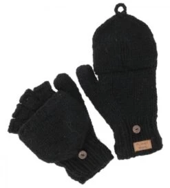 Warme handgestrickte Fausthandschuhe mit Klappe um die Finger auch mal für feine Tätigkeiten frei zu haben. Die Klappe kann mit einem Knopf fixiert werden. Der Daumen hat eine kleine Öffnung, so dass man ihn benutzen kann ohne den Handschuh auszuziehen.