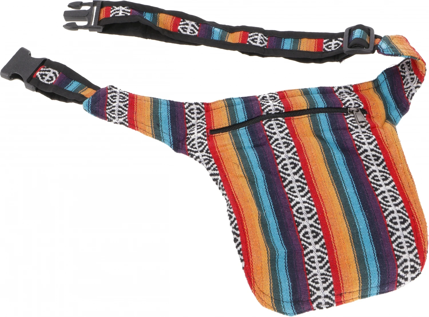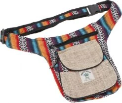 Praktische Gürteltasche aus Hanffaser in Kombination mit traditionellem Webstoff aus Nepal.
