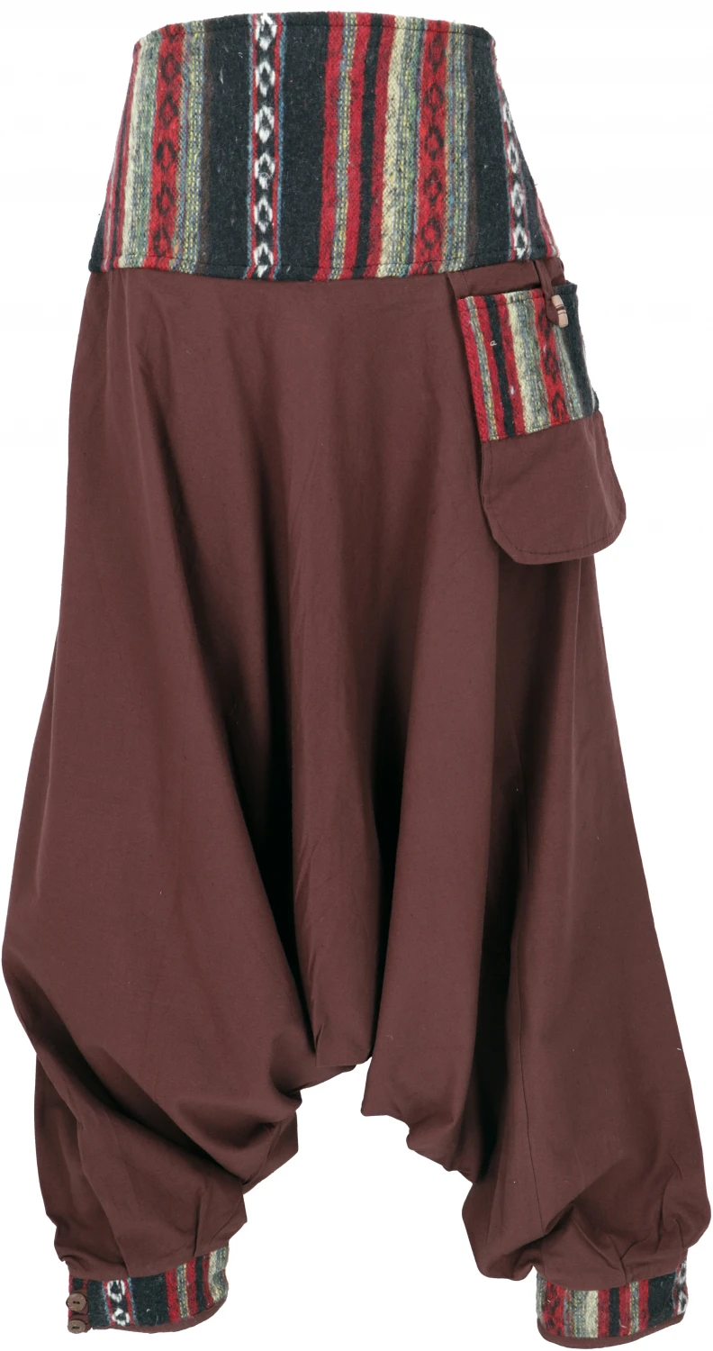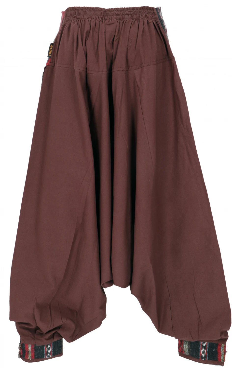 Extraweite Pluderhose mit tief sitzendem Schritt und rückseitig elastischem Bund.