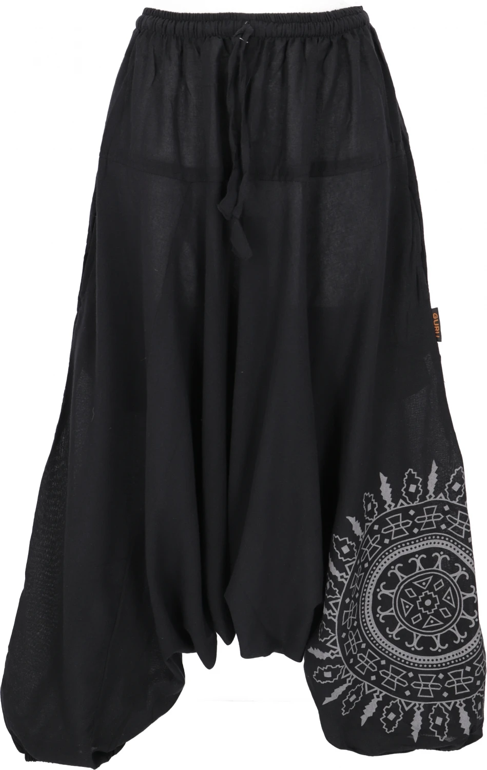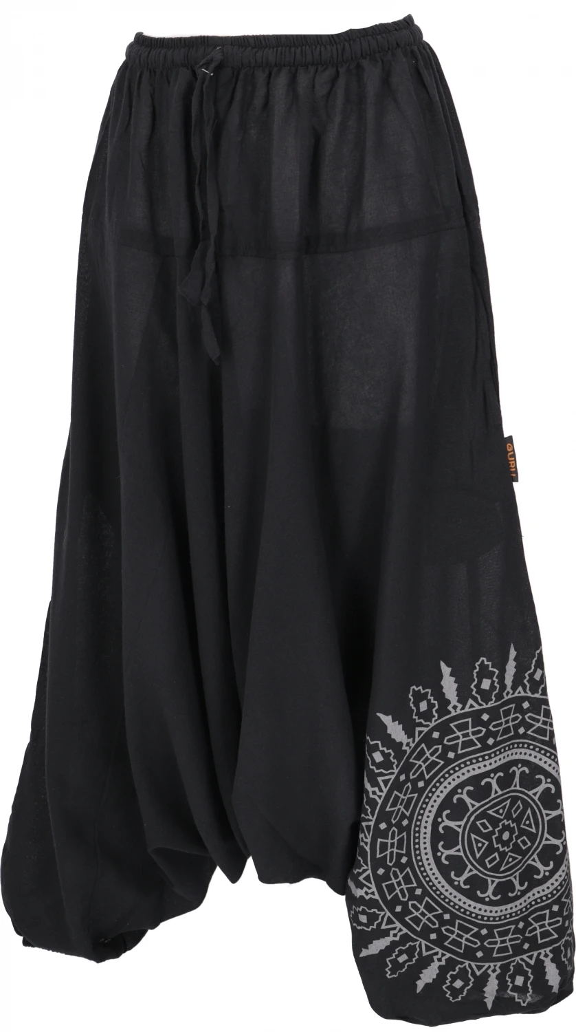 Extraweite Pluderhose mit tief sitzendem Schritt und elastischem Bund mit extra Kordelzug.