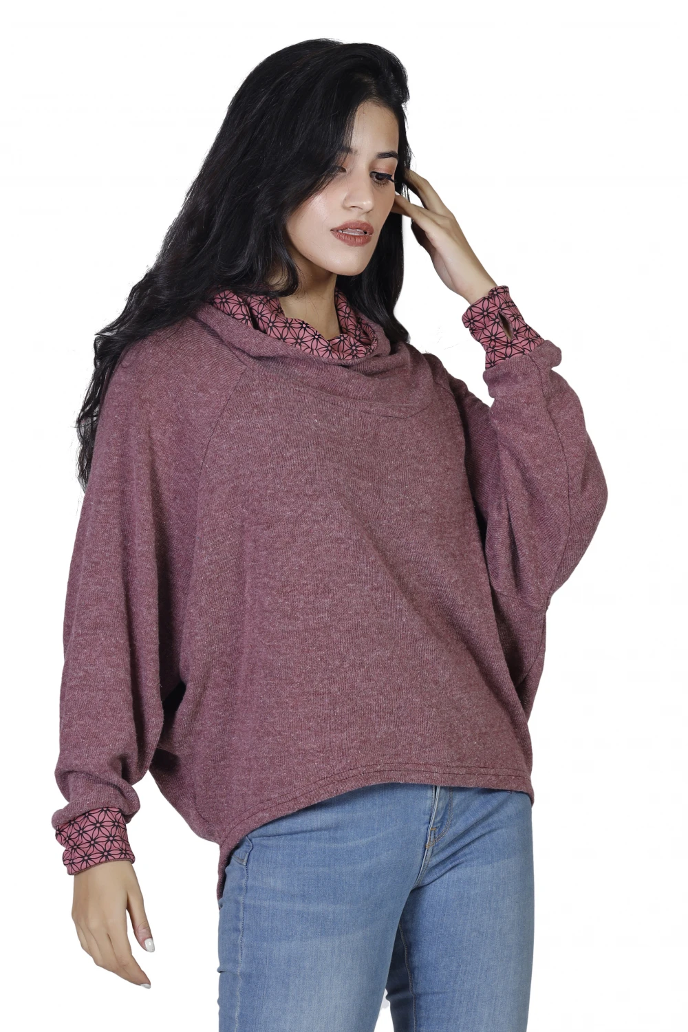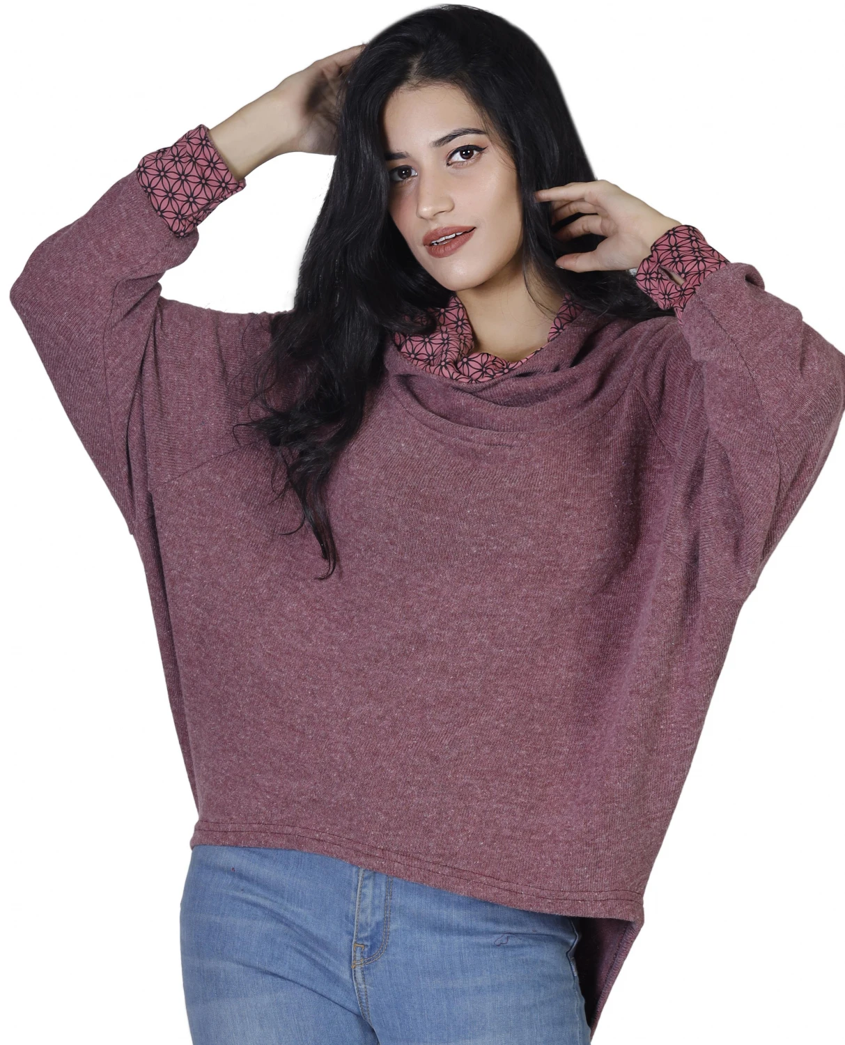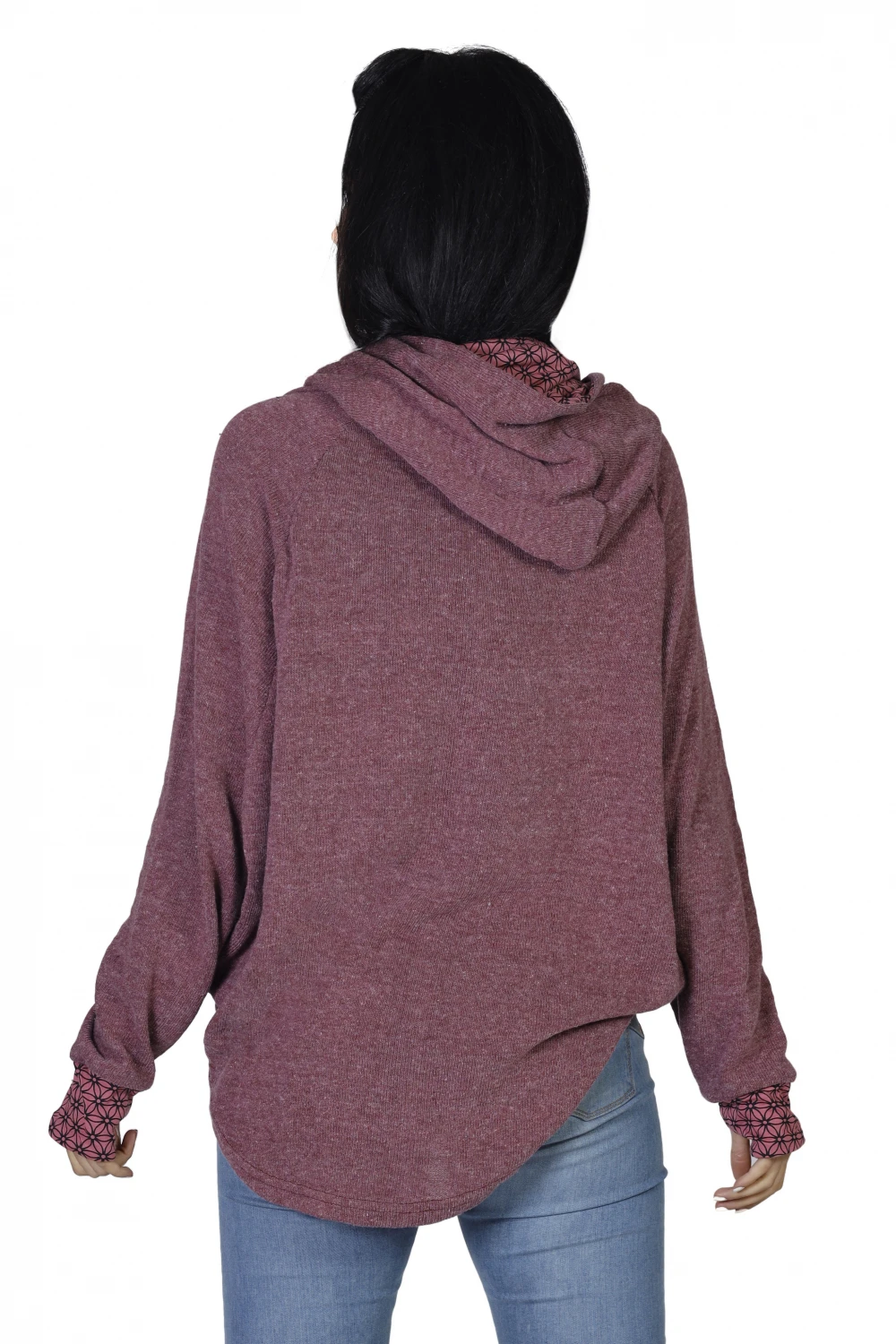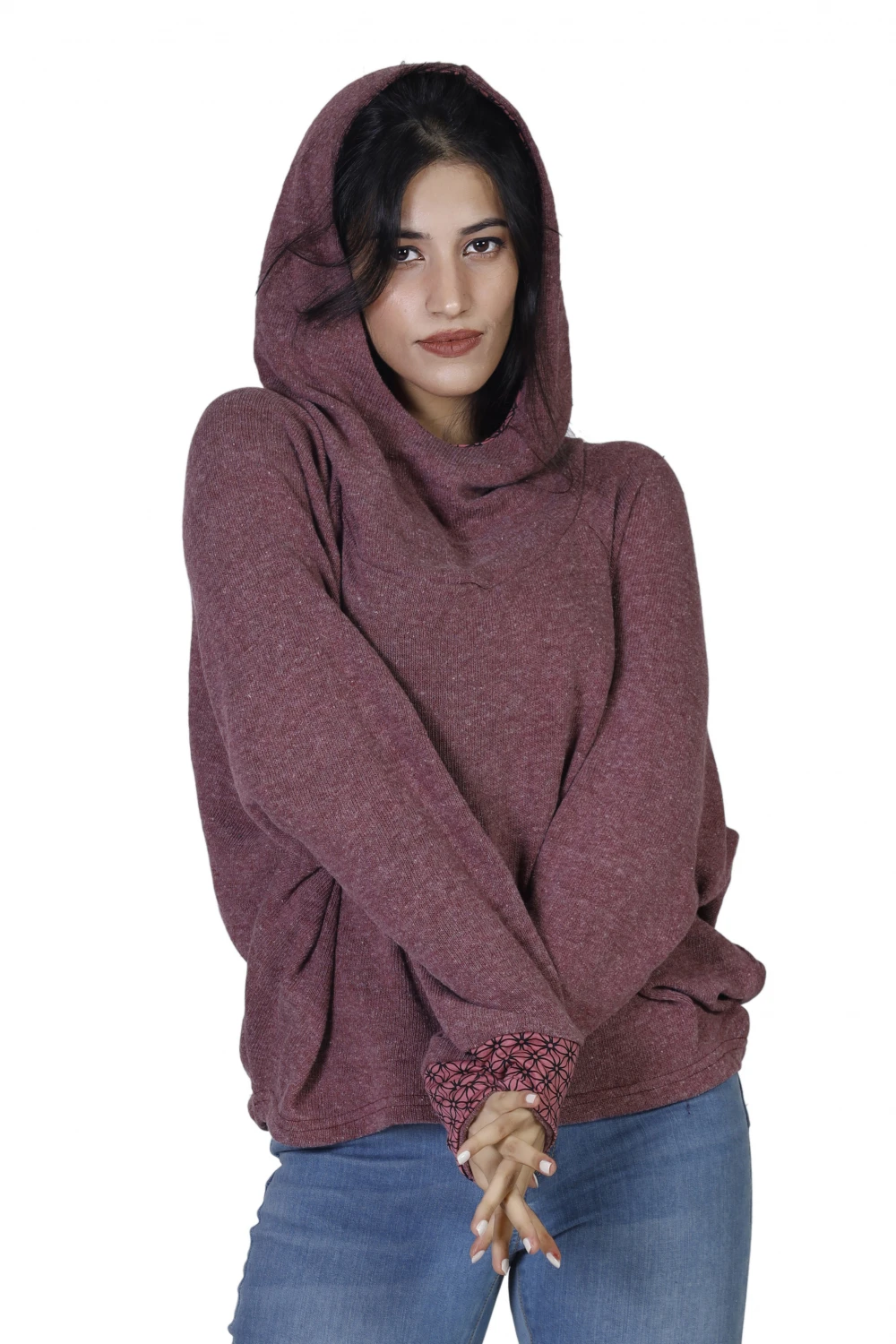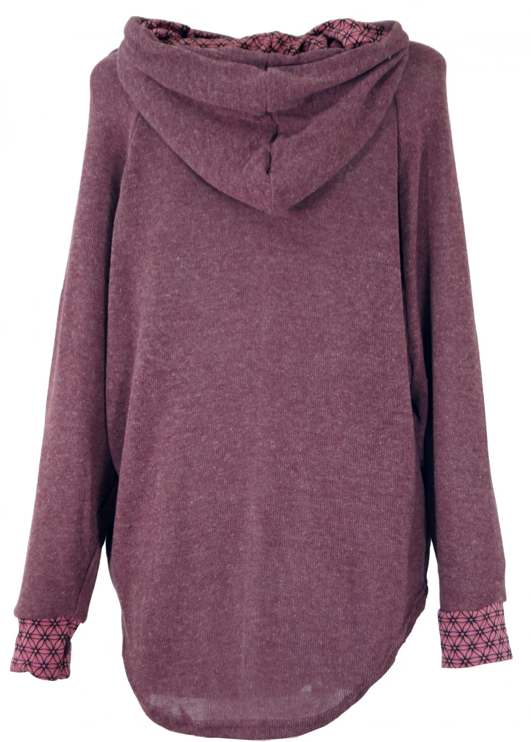 Stylischer Hoody für die etwas kühleren Tage. Kapuze und Armbündchen sind farblich abgesetzt und dezent mit Blume des Lebens Design versehen.