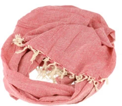 Handgewebtes, leichtes Baumwolltuch mit Fransen. Das Gewebe hat eine natürliche Struktur und ist angenehm luftdurchlässig.