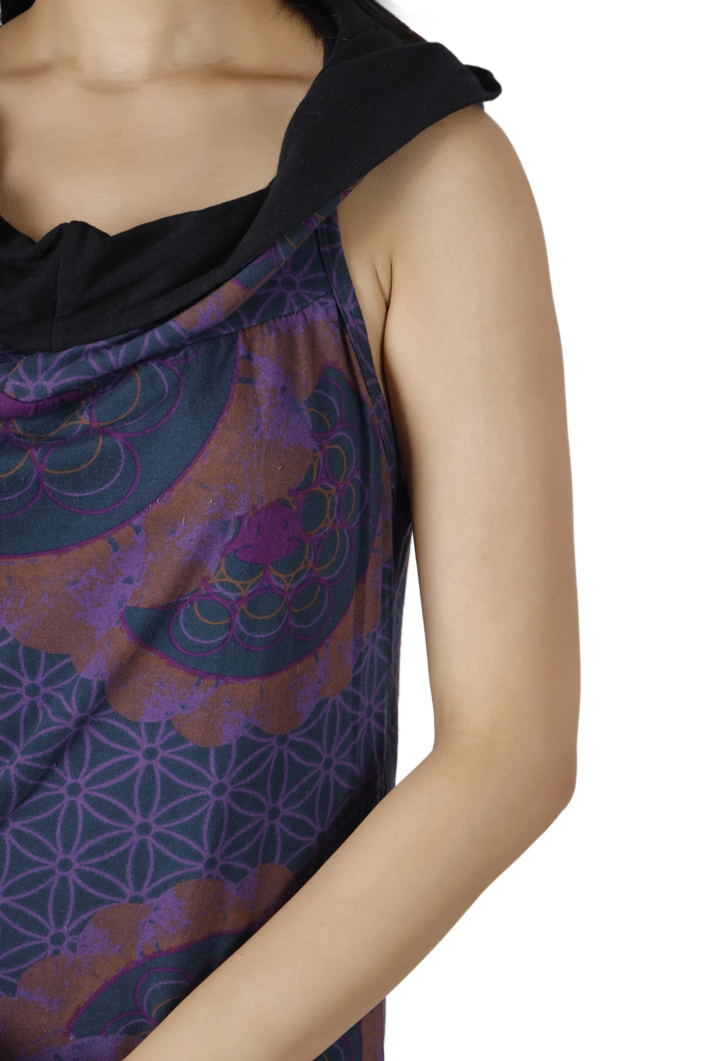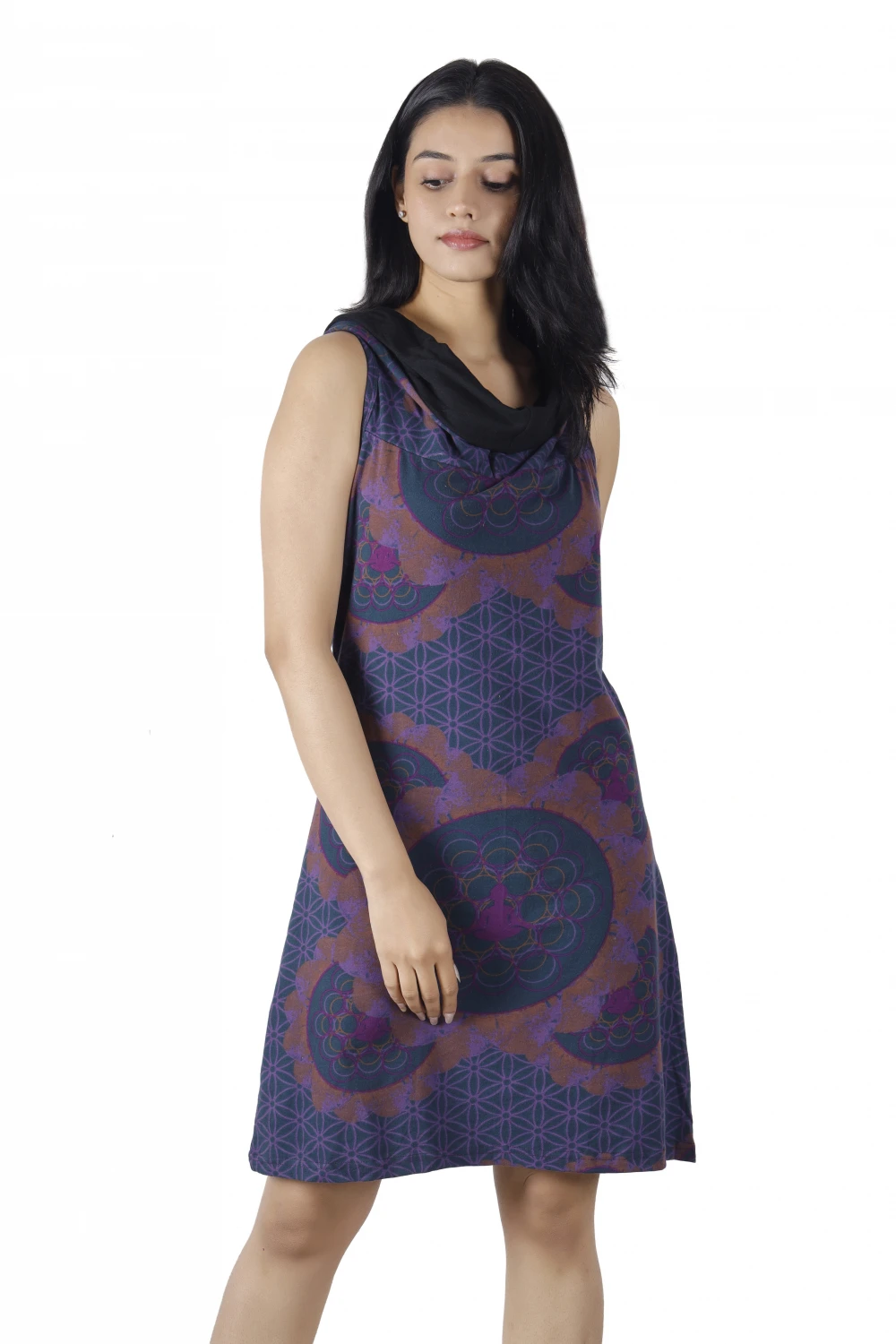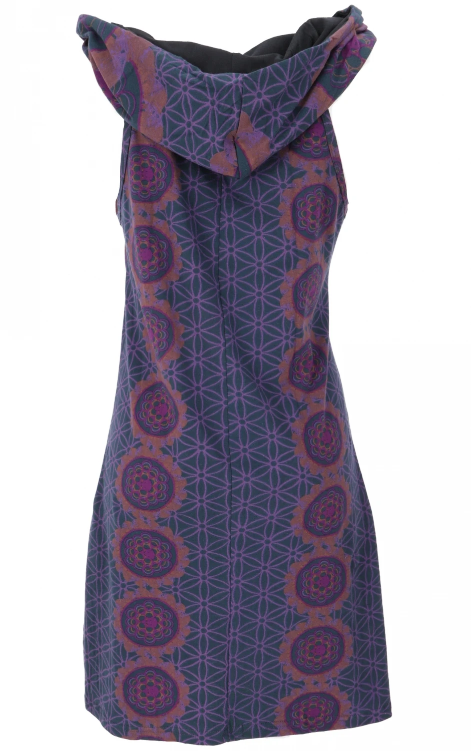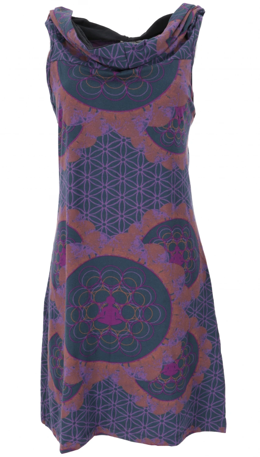 Tolles Psytrance Kleid mit Schalkragenkapuze. Das individuelle Goa Kleid fällt sehr schön. Der einmalige psychedelische Druck vereint Buddha, Mandala und Blume des Lebens.