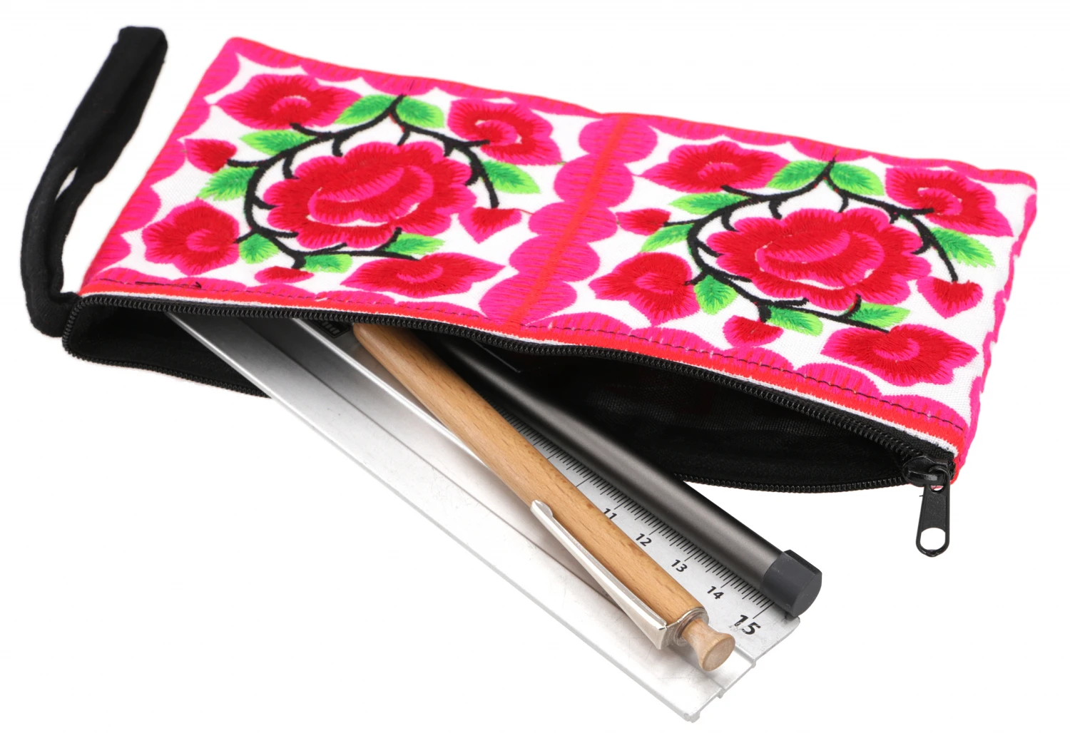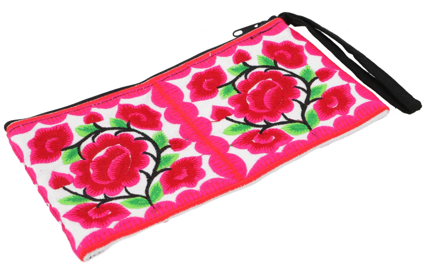 Von beiden Seiten bunt besticktes Täschchen mit Reißverschluss. Die farbenfrohe Stickerei ist typisch für das Bergland Thailands. Ob als Kosmetikaufbewahrung oder als Stiftemäppchen, ob für Schmuck oder sonstigen Krimskrams. In dieser hübschen bunten Mappe ist alles gut aufgehoben.