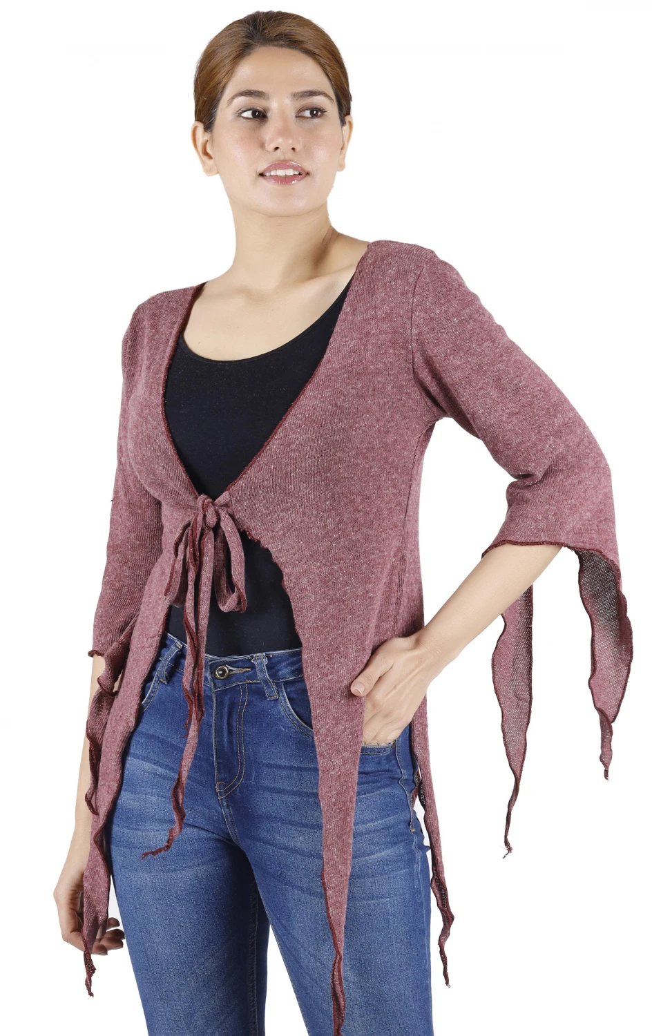 Zick Zack Jäckchen mit ausgestellten Zipfelärmeln. Das natürliche Material aus Baumwoll-Strick umschmeichelt die Figur und ist sehr angenehm zu tragen.