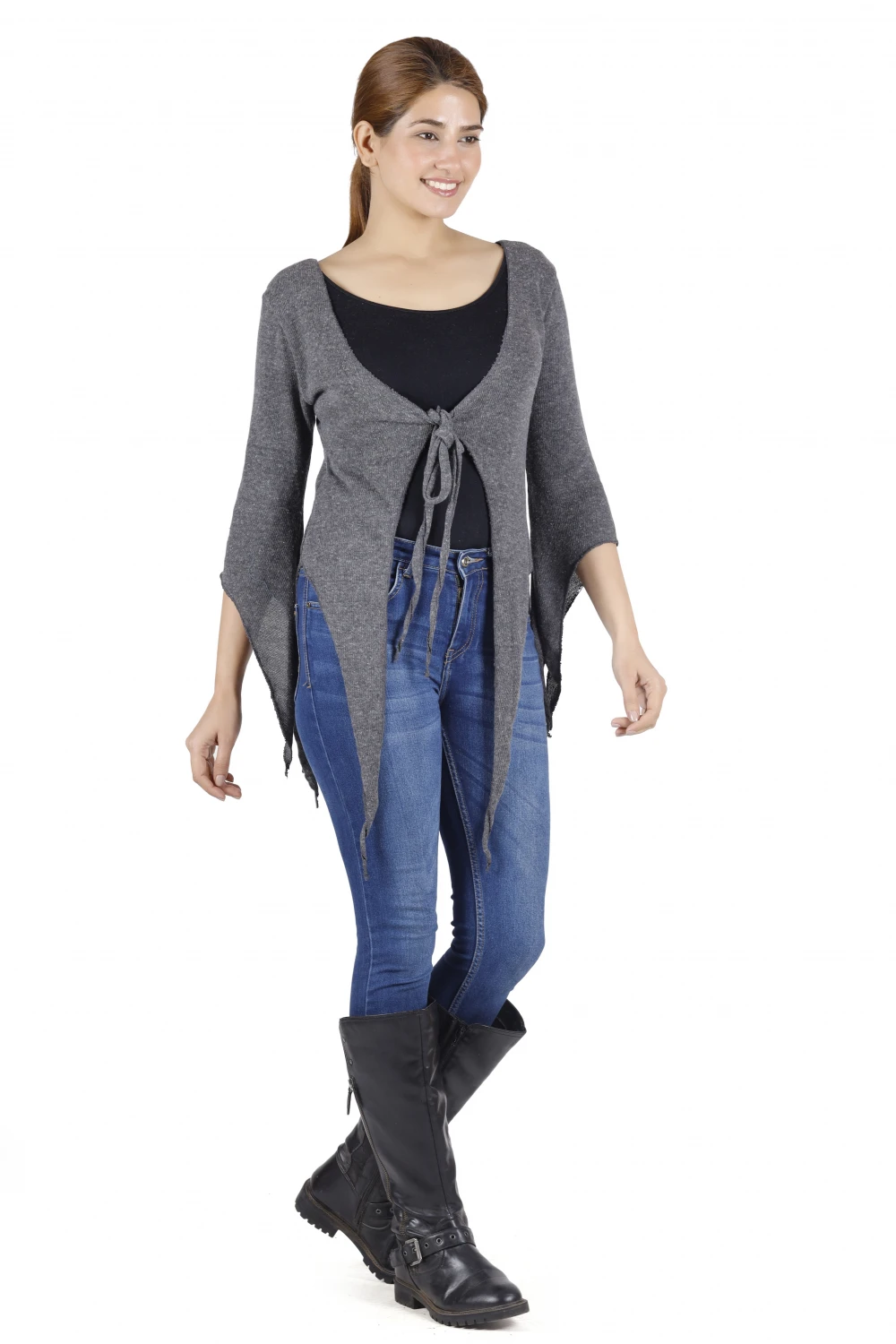 Zick Zack Jäckchen mit ausgestellten Zipfelärmeln. Das natürliche Material aus Baumwoll-Strick umschmeichelt die Figur und ist sehr angenehm zu tragen.