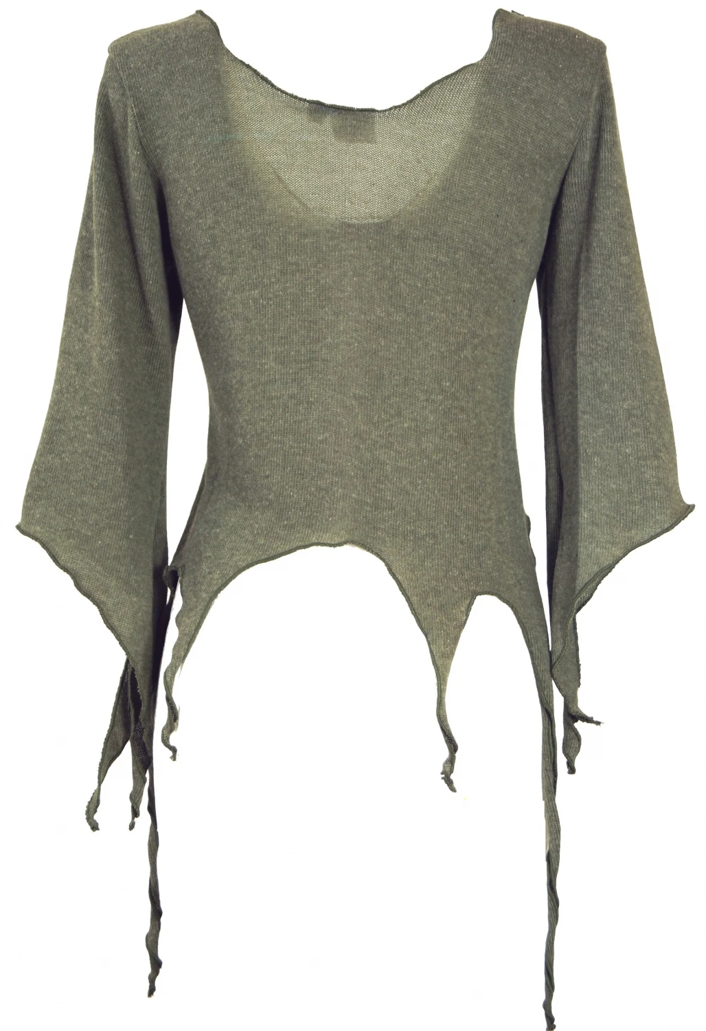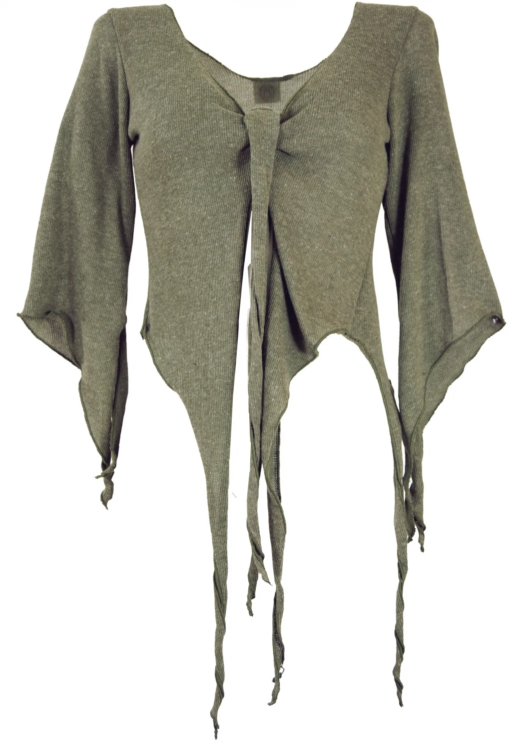 Zick Zack Jäckchen mit ausgestellten Zipfelärmeln. Das natürliche Material aus Baumwoll-Strick umschmeichelt die Figur und ist sehr angenehm zu tragen.