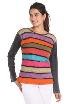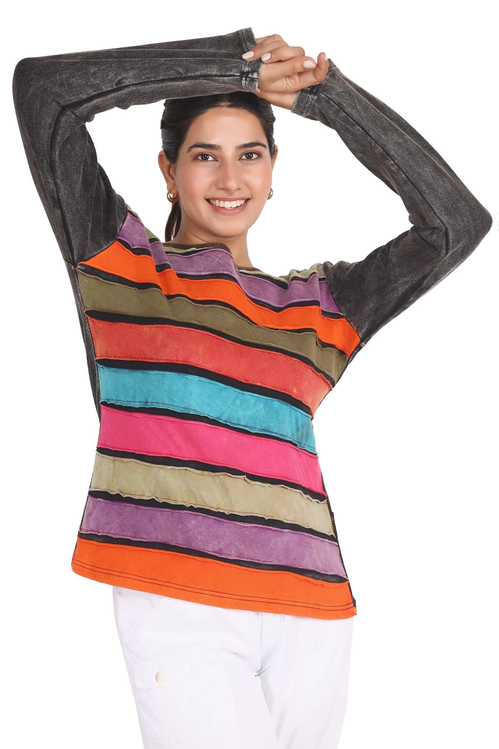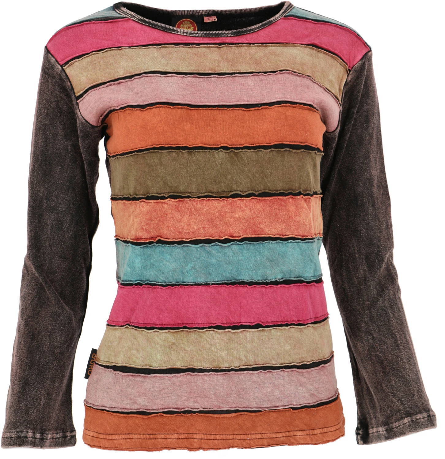 Farbenfrohes Patchwork-Shirt im Ethno Look. Patches in Regenbogenfarben mit tollem Druck machen dieses Shirt zu einem einzigartigen Unikat.