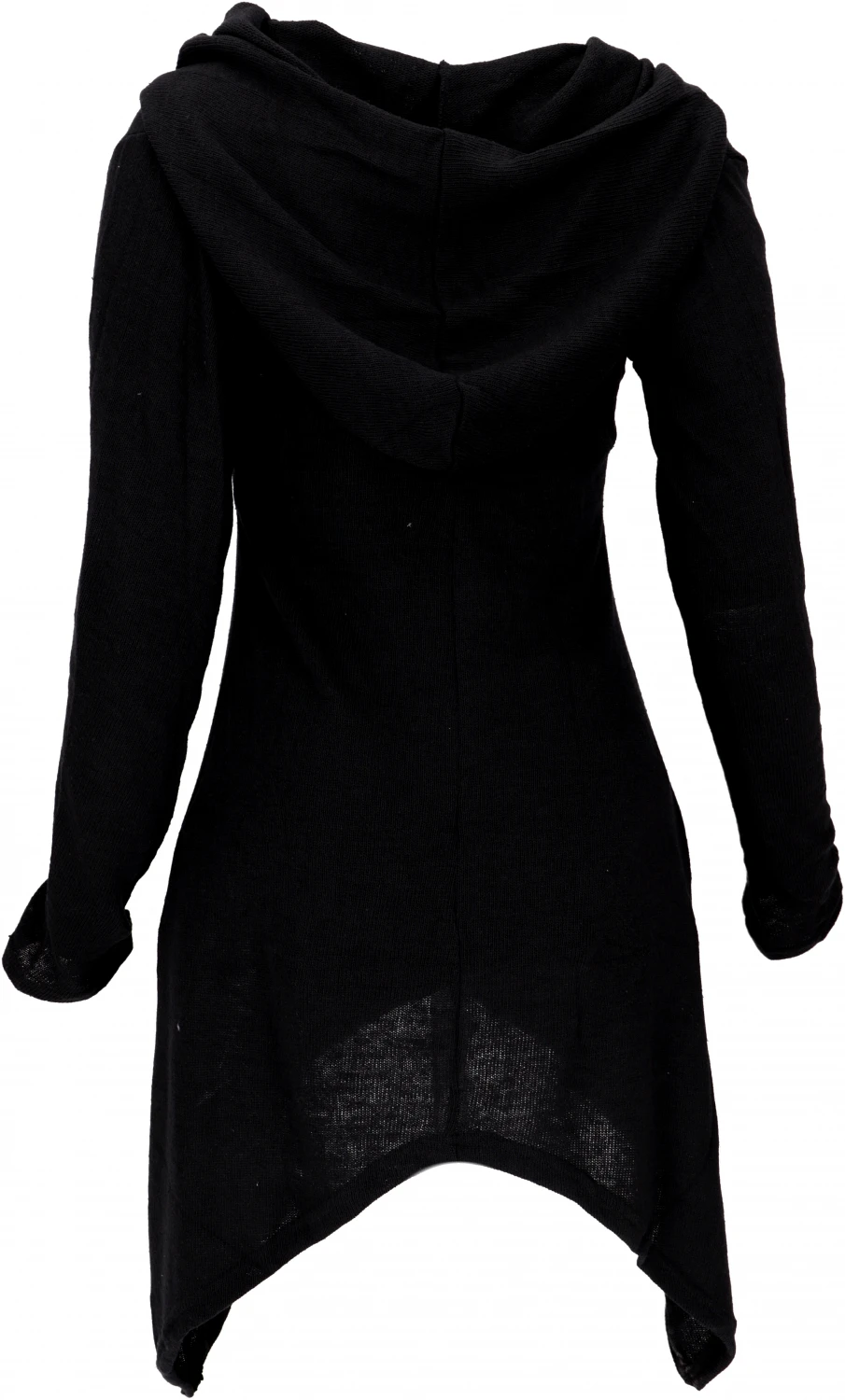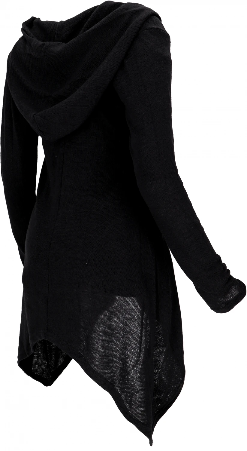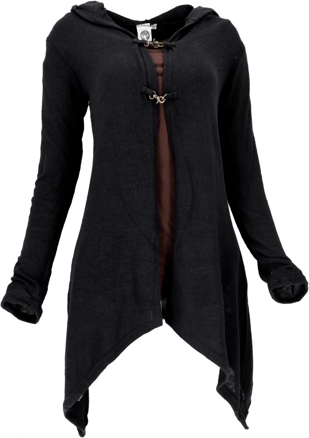 Legere Strickjacke mit übergroßer Kapuze. Die Jacke wird mit kleinen Hakenösen geschlossen. Das natürliche Material aus Baumwoll-Strick umschmeichelt die Figur und ist sehr angenehm zu tragen.
