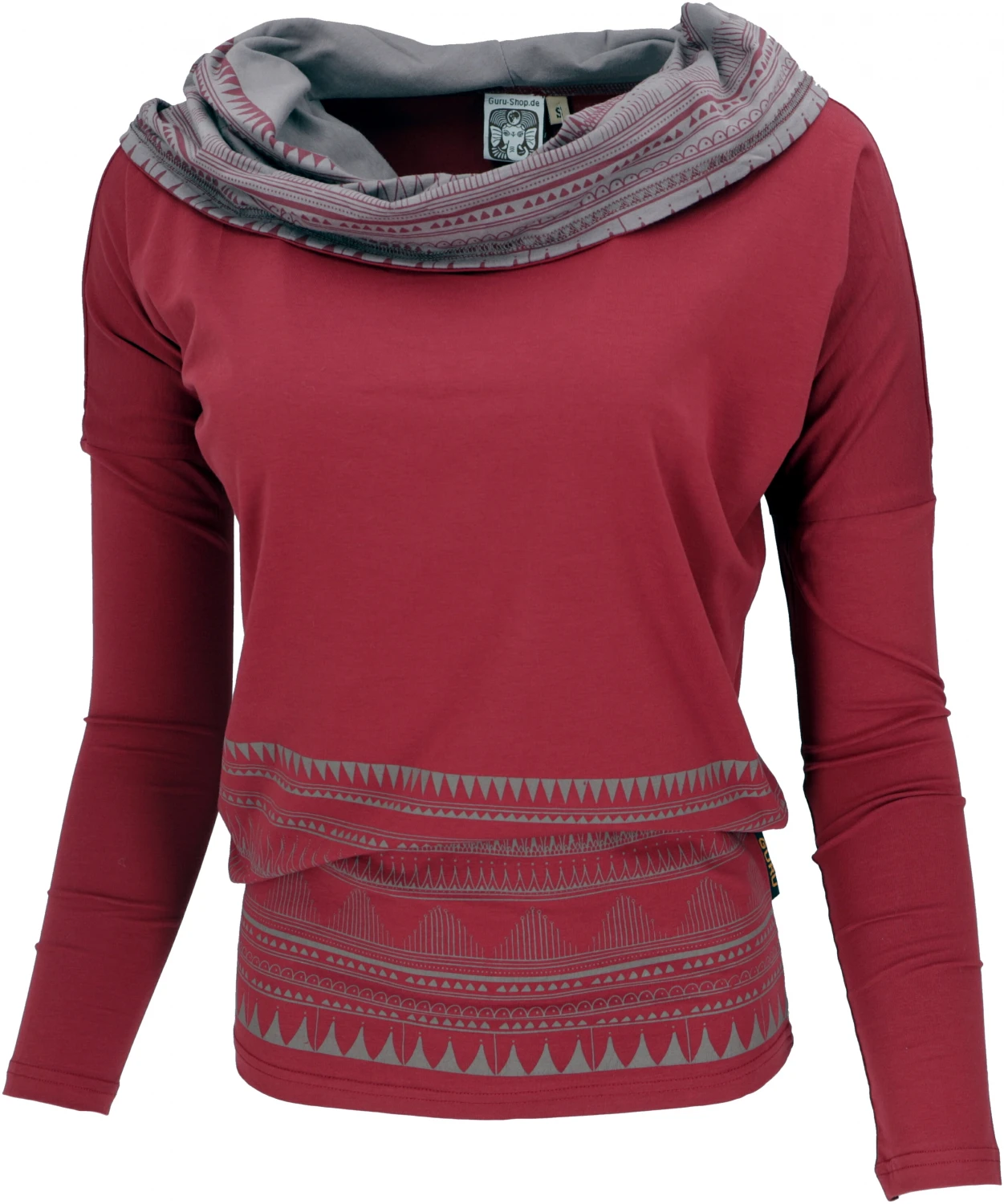 Lockeres Longshirt Aus Bio-Baumwolle, Boho Shirt Schalkapuze – Rot/grau