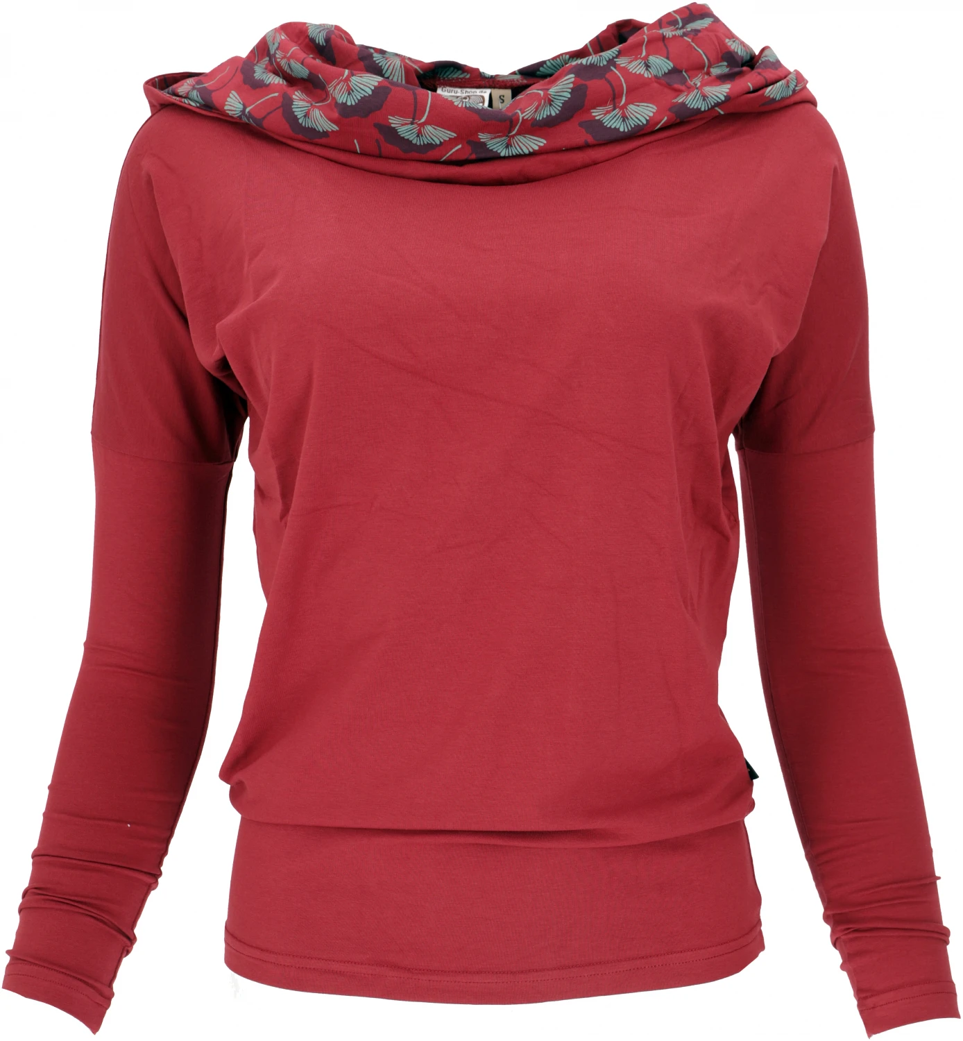 Lockeres Longshirt Aus Bio-Baumwolle, Boho Shirt Schalkapuze – Rot