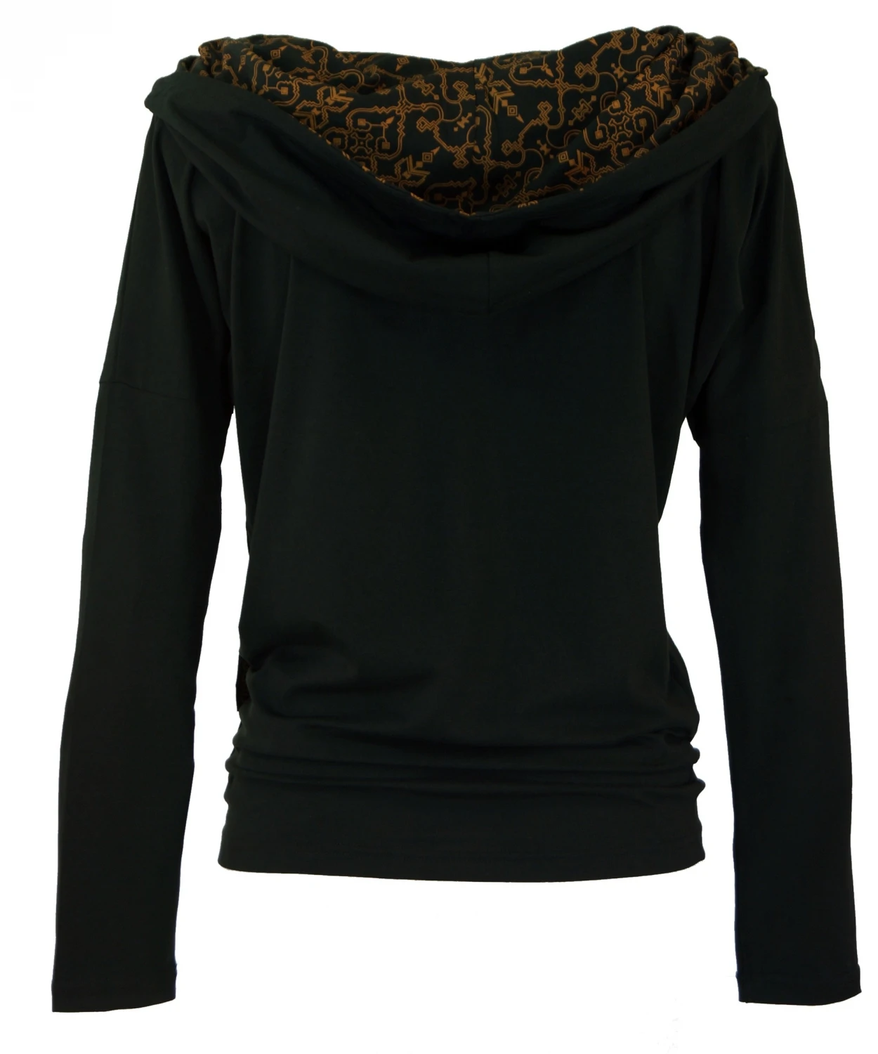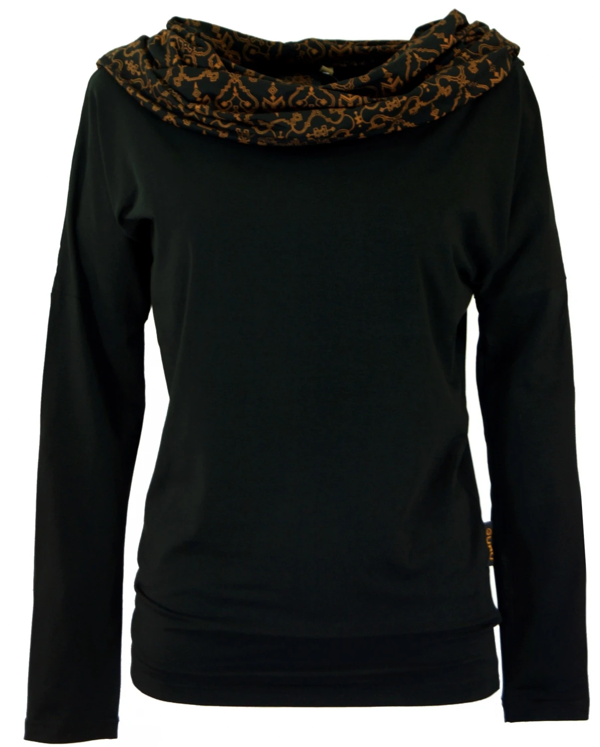 Lockeres Longshirt Aus Bio-Baumwolle, Boho Shirt Schalkapuze – Schwarz