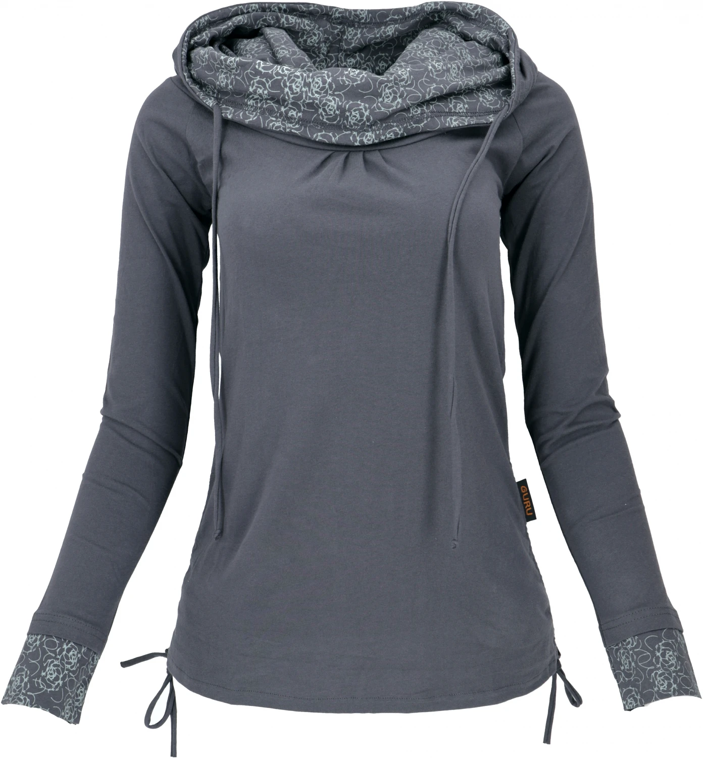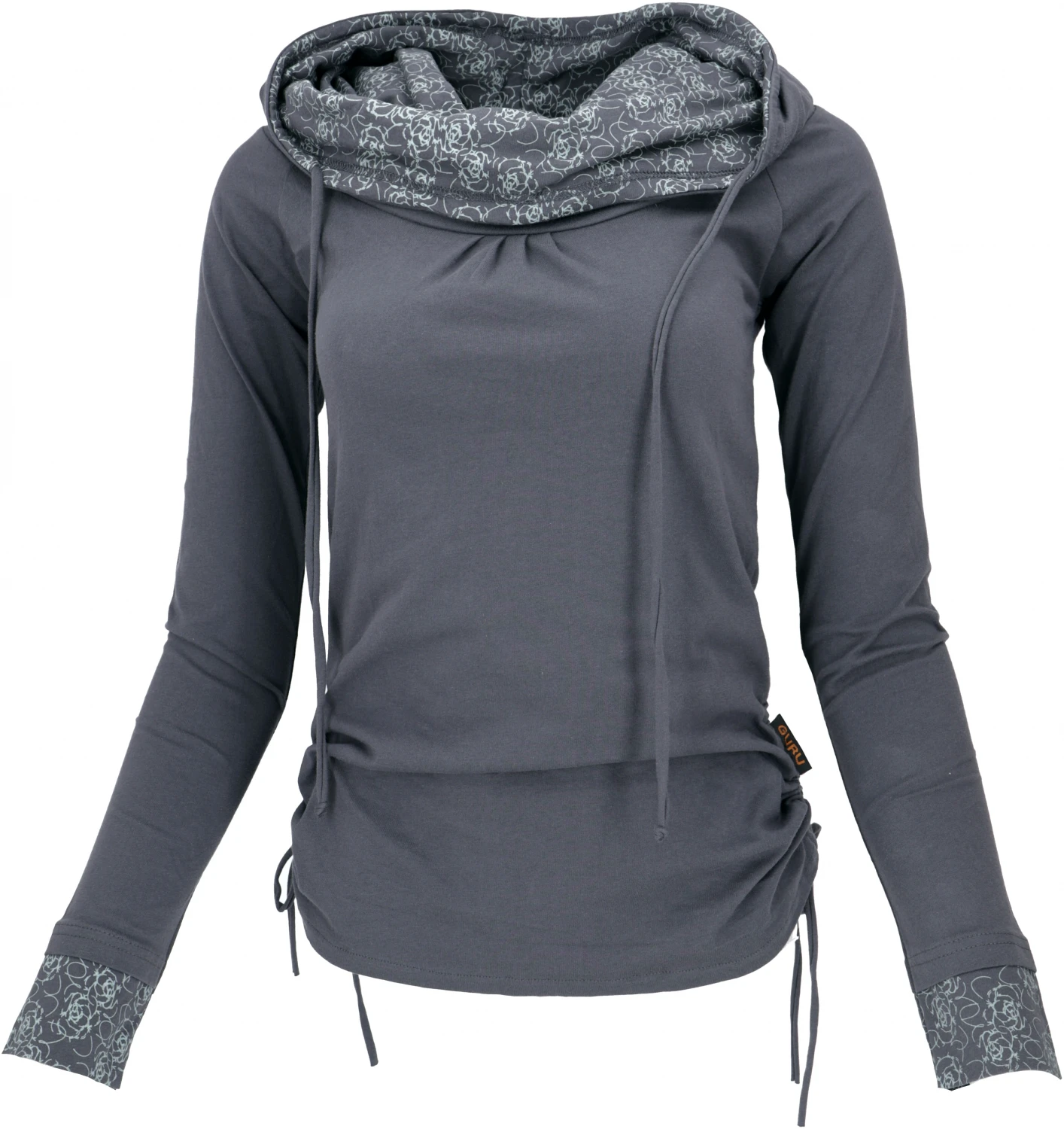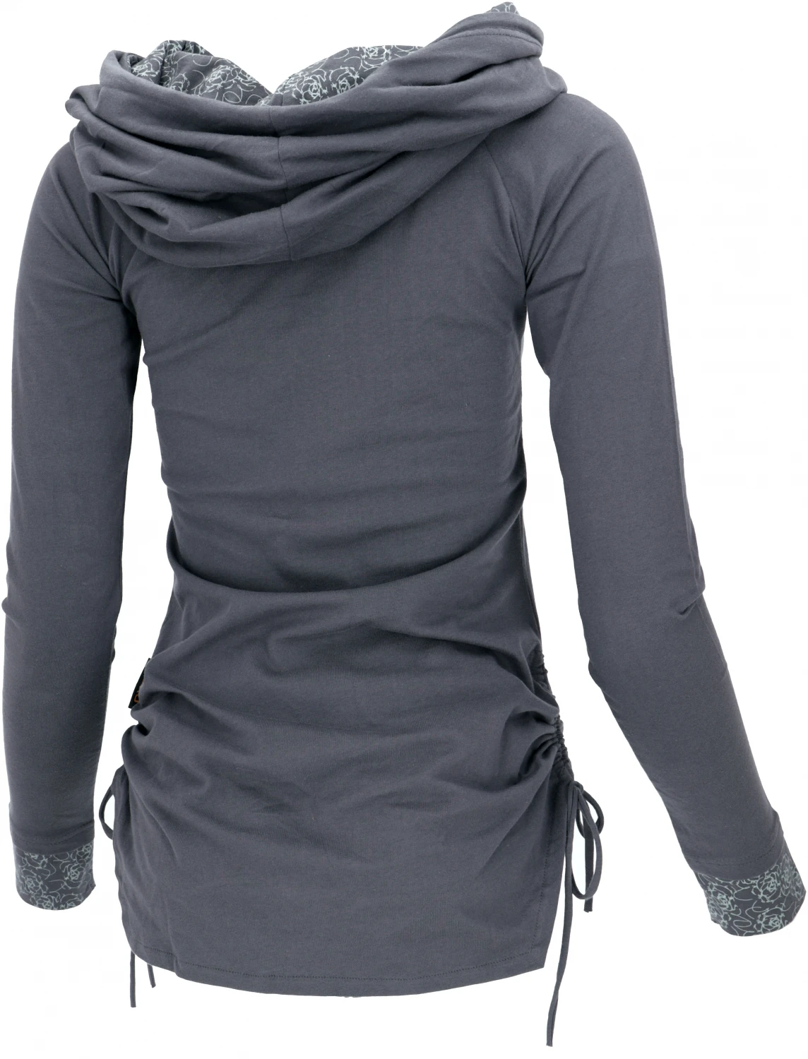 Longshirt Aus Bio-Baumwolle, Boho Shirt Schalkapuze – Blaugrau