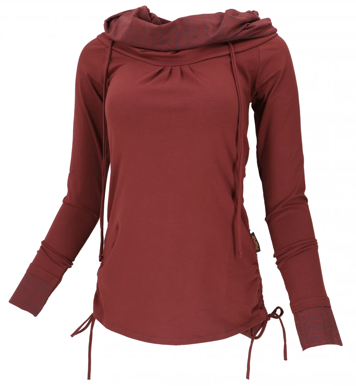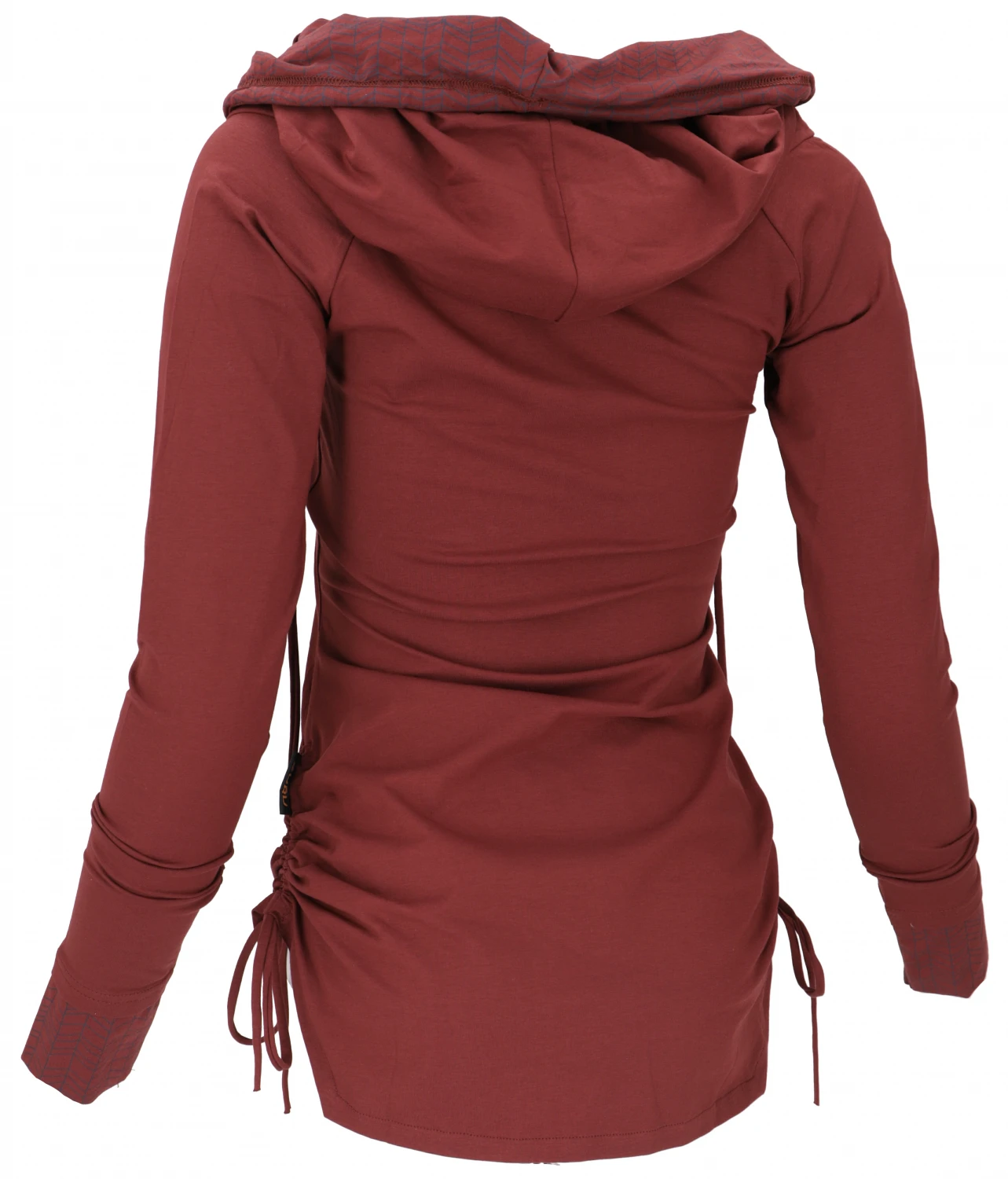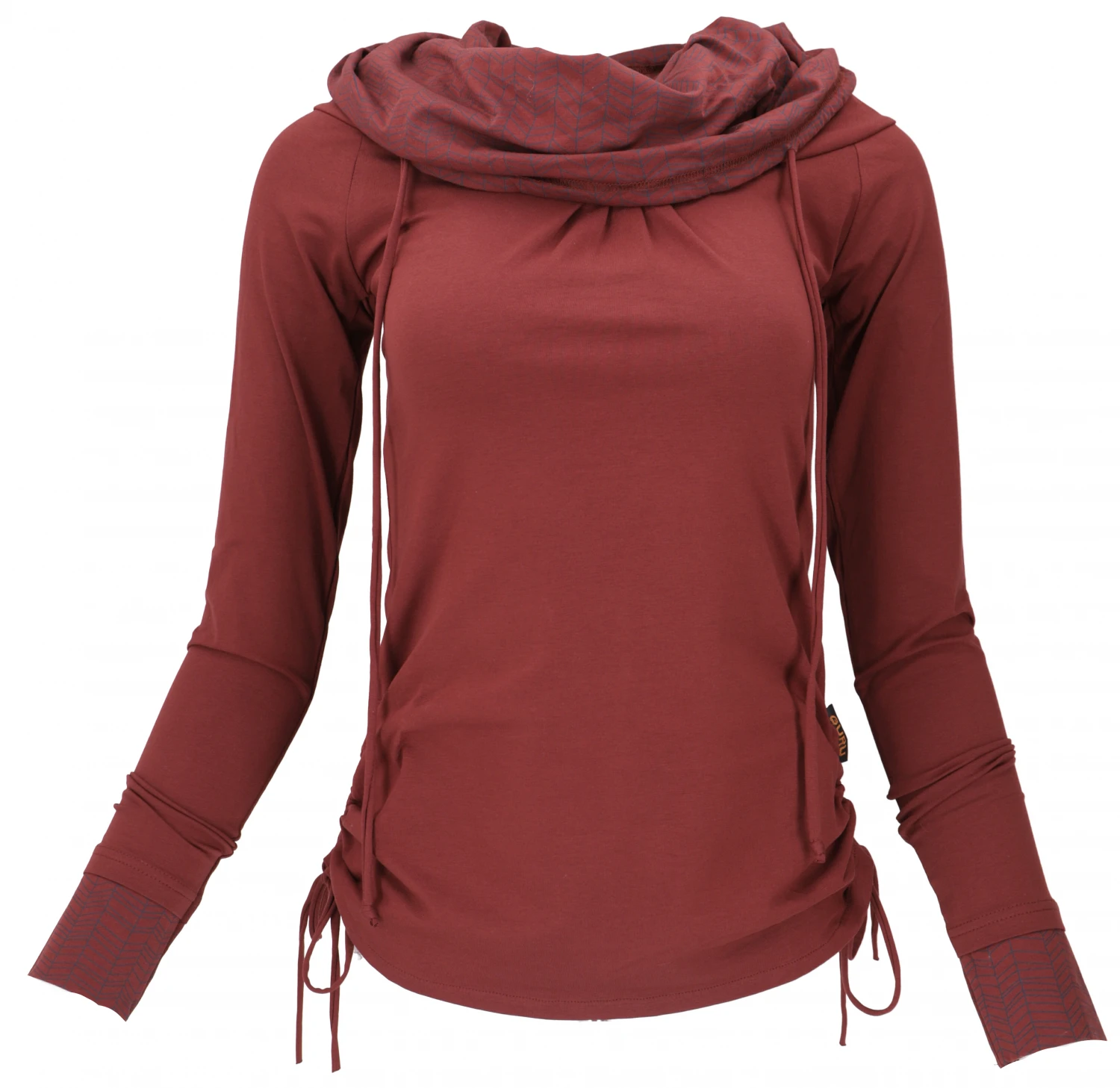 Longshirt Aus Bio-Baumwolle, Boho Shirt Schalkapuze – Dattelbraun/blau