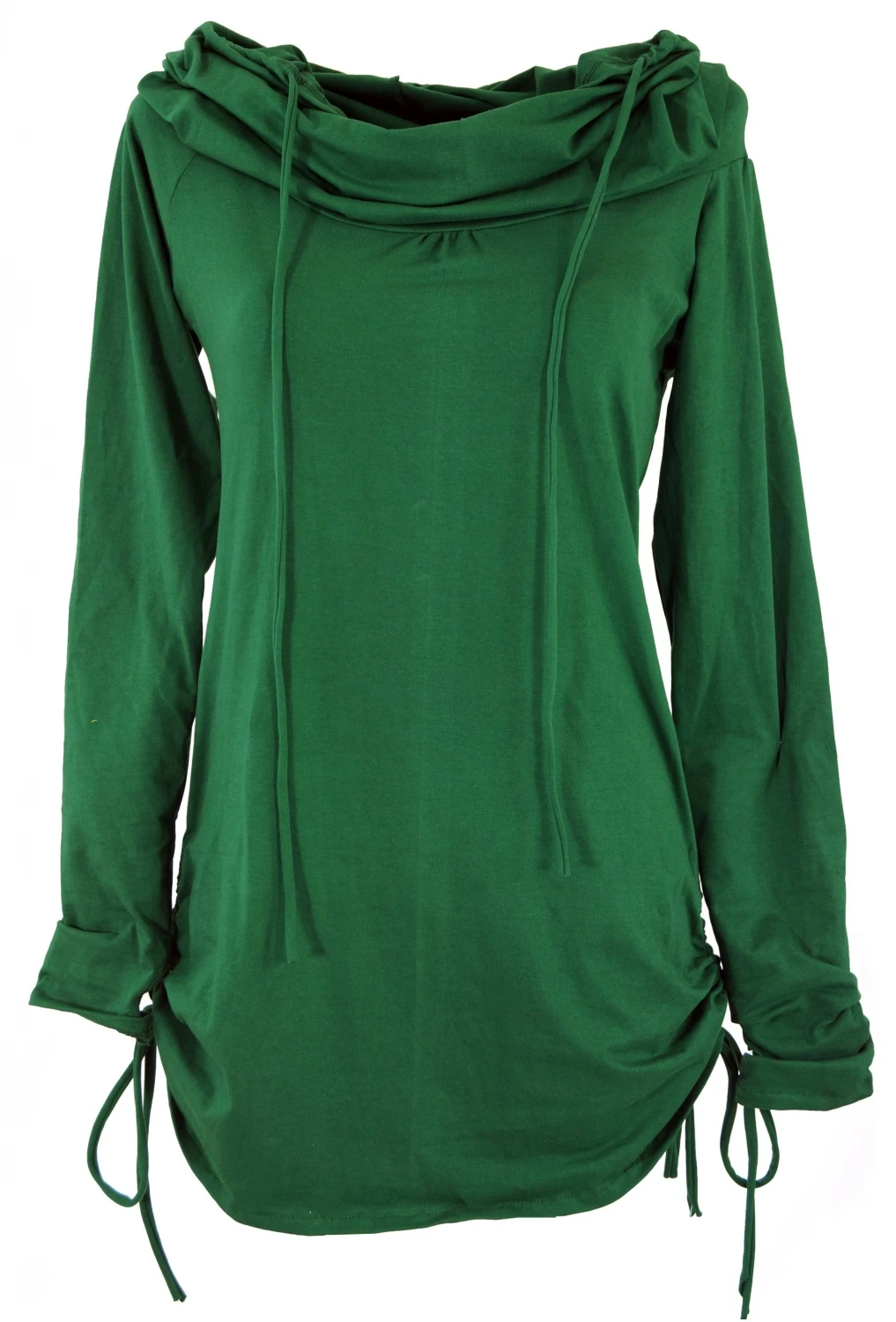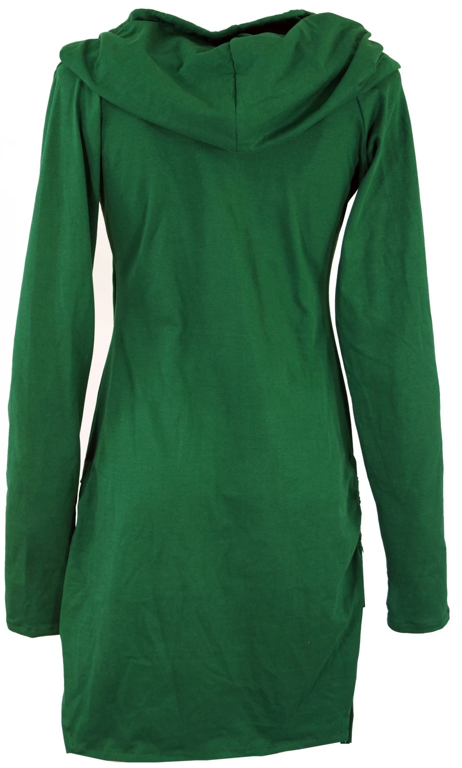 Super kurzes Minikleid mit weiter Schalkapuze und Daumenlöchern in den Ärmeln.