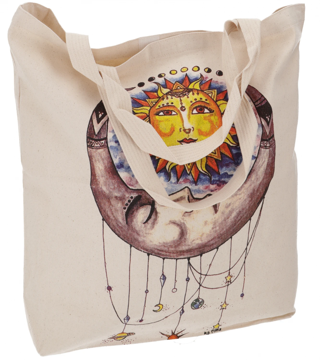 Trendige Tasche im Retro-Look mit tollem Print. Die geräumige Tasche ist von einer Seite bunt, von der anderen Seite schwarz bedruckt. Eine Tasche in der man fast alles unterbekommt und die mit ihrem hochwertigen Druck gute Laune verbreitet. Der stabile Baumwollstoff eignet sich auch für schwerere Einkäufe.