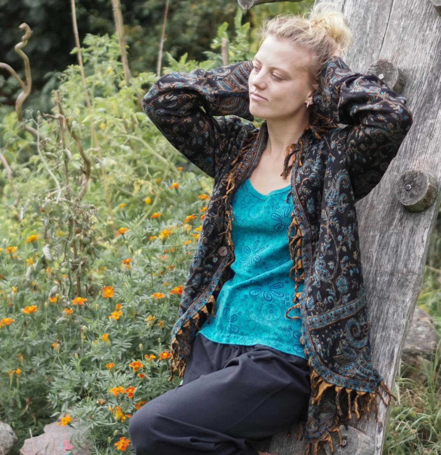 Weite Jacke mit orientalischem Paisleymuster aus kuschelig, weichem Material.