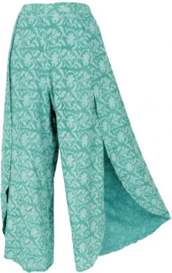 Weite Schlaghose mit rückseitig elastischem Bund. Die sich überlappenden Hosenbeine sind seitlich offen und bieten viel Bewegungsfreiheit.