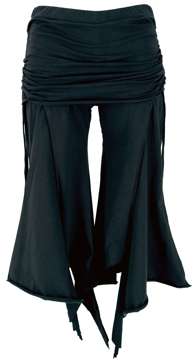 Ausgefallene Pixi Schlaghose mit kurzem Rock und weitem Bein. Der Rock kann durch seitliche Schnüre gerafft werden. Tolle bequeme Tanzhose.