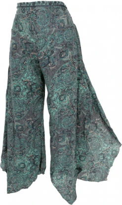 Extraweite Hose mit breitem, hoch geschnittenem elastischem Bund. Die Hosenbeine sind weit und seitlich geschlitzt. Luftig leicht, mit orientalischem Muster umschmeichelt die Hose die Figur und ist ein absolutes Highlight fürs Sommeroutfit.