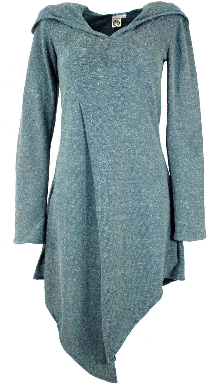 Locker fallendes, Zick Zack Elfen Strickkleid mit weiter Kapuze. Durch den coolen Wickellook fällt das Kleid schön locker und umspielt die Figur.