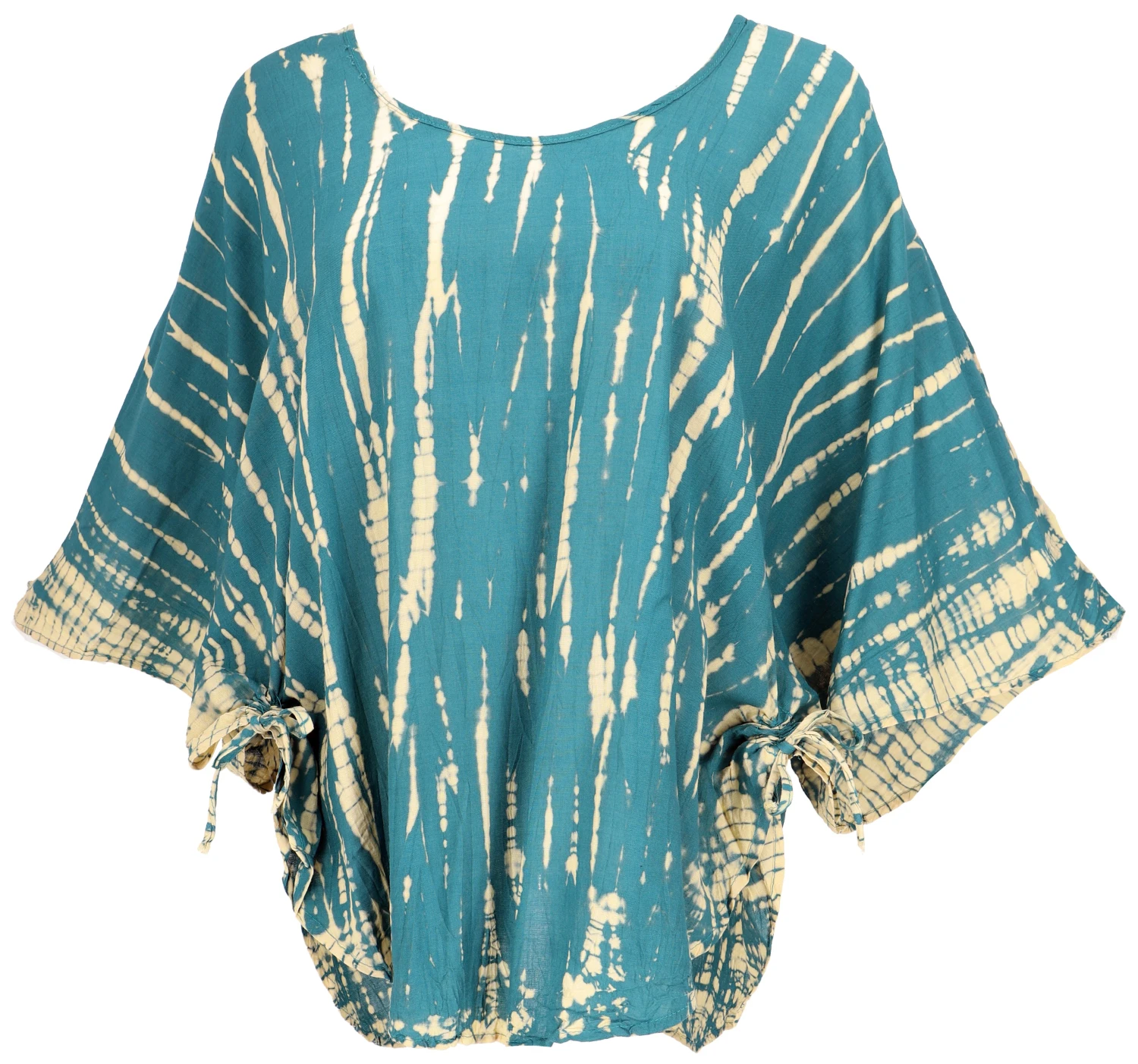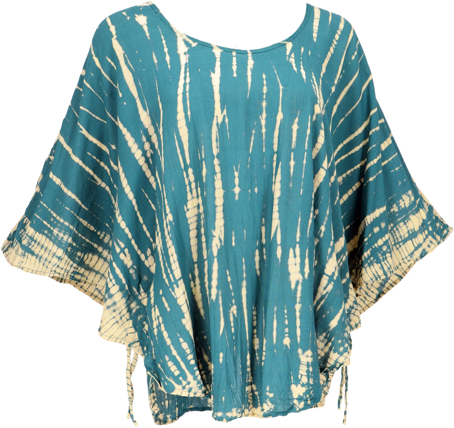 Tolles, weites Blusentop. Das luftige Top hat einen runden Ausschnitt und weite Fledermausärmel. Die Batik ist traditionell von Hand gefertigt und kann daher leicht von der Abbildung abweichen.