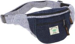 Praktische Gürteltasche aus Hanffaser in Kombination mit traditionellem Webstoff aus Nepal.