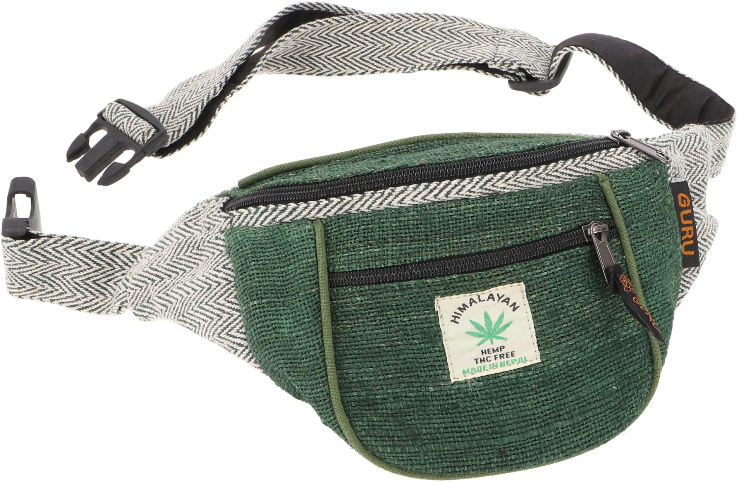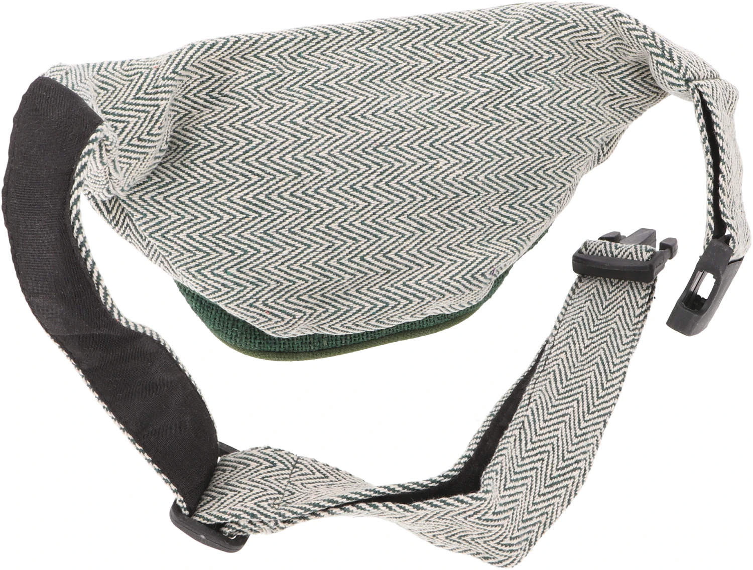 Praktische Gürteltasche aus Hanffaser in Kombination mit traditionellem Webstoff aus Nepal.